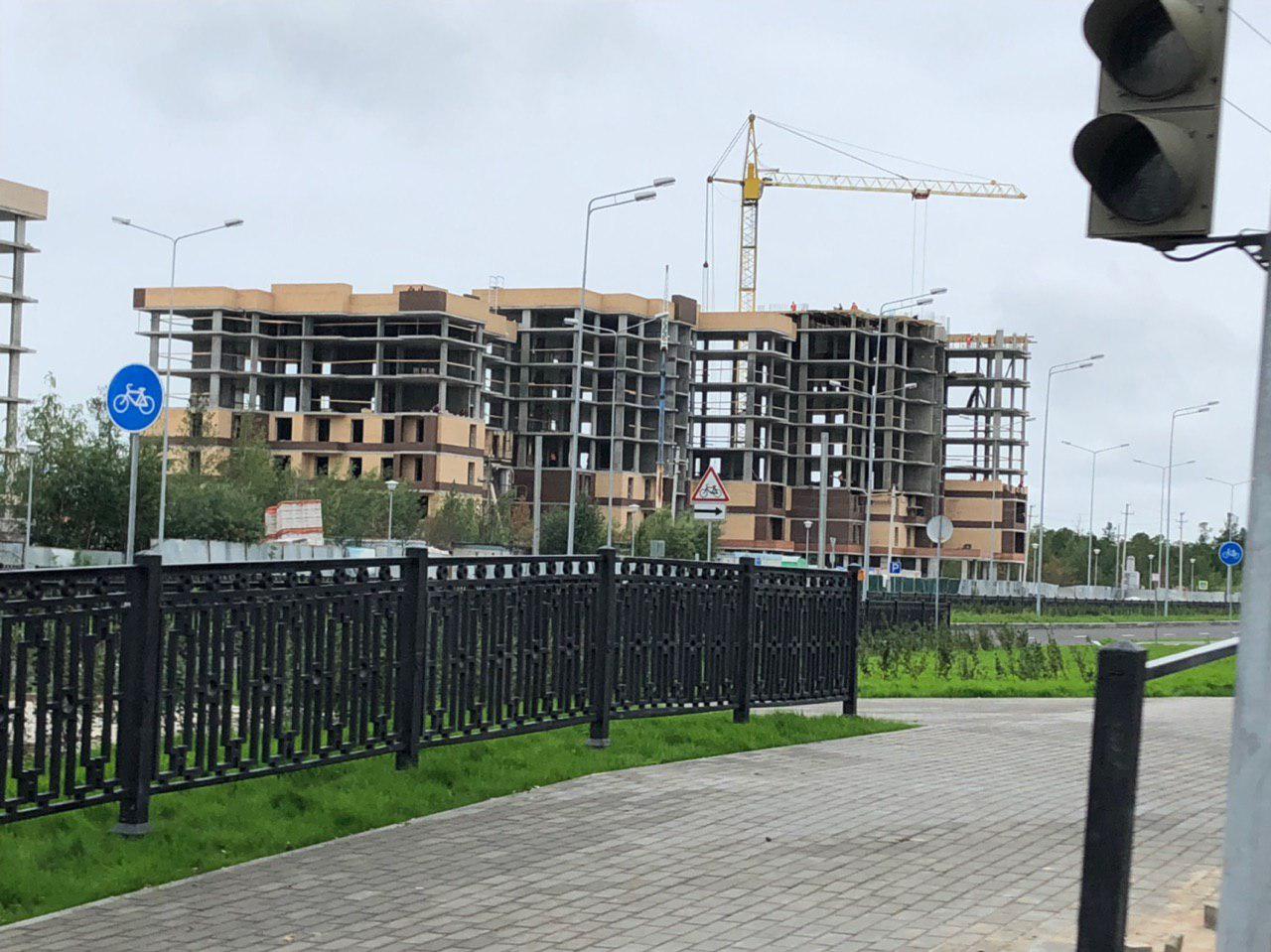 Ведутся работы по укладке ограждающих конструкции на кровле 6,7 этажной секций.