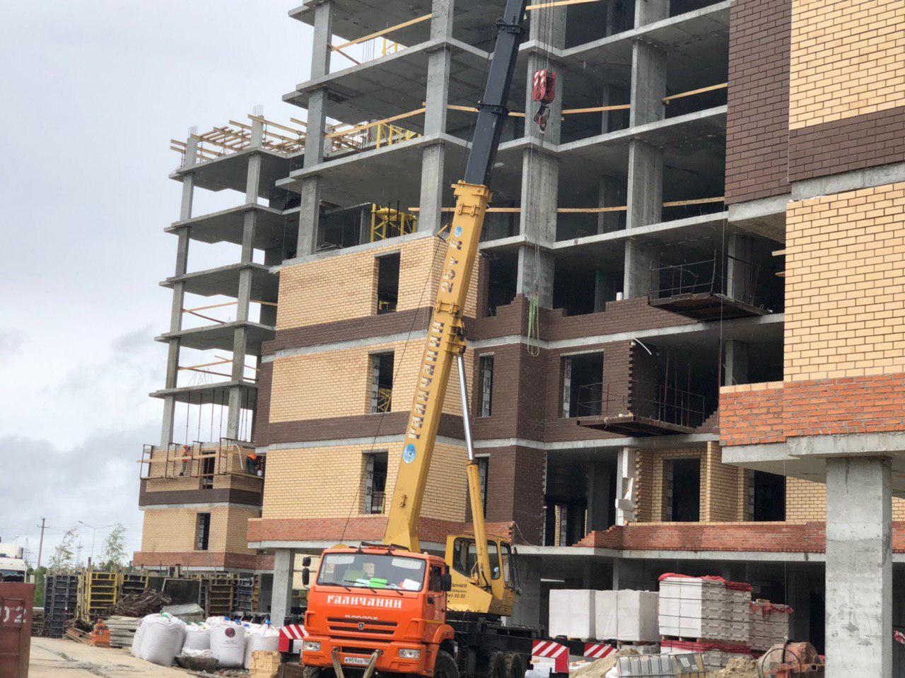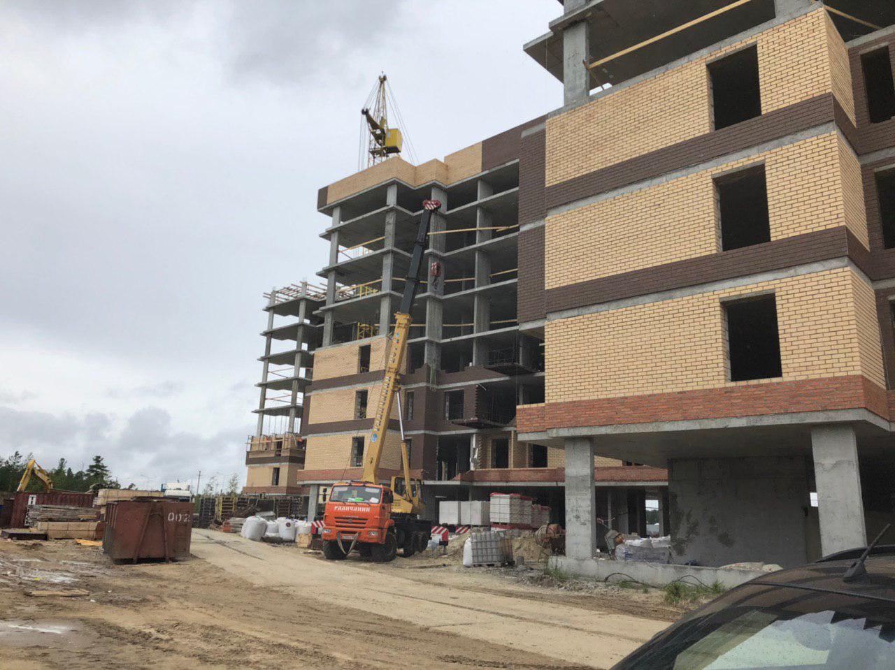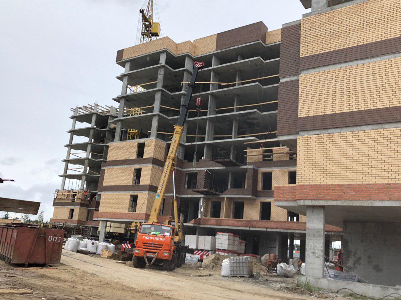 Ведутся работы по укладке ограждающих конструкций на 2,3,4, этажах из кирпича 6,7,8 этажных секций.