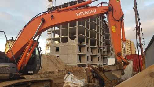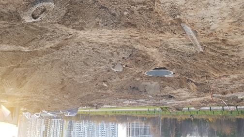 На строительной площадке ООО СК (ЮСК) ведет работы по устройству наружных сетей канализации, работы по закольцовке сетей тепловодоснабжения.