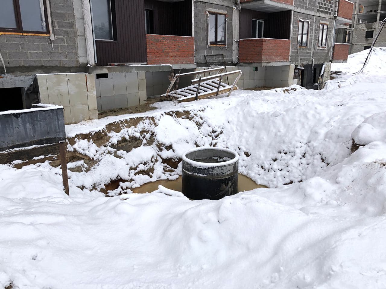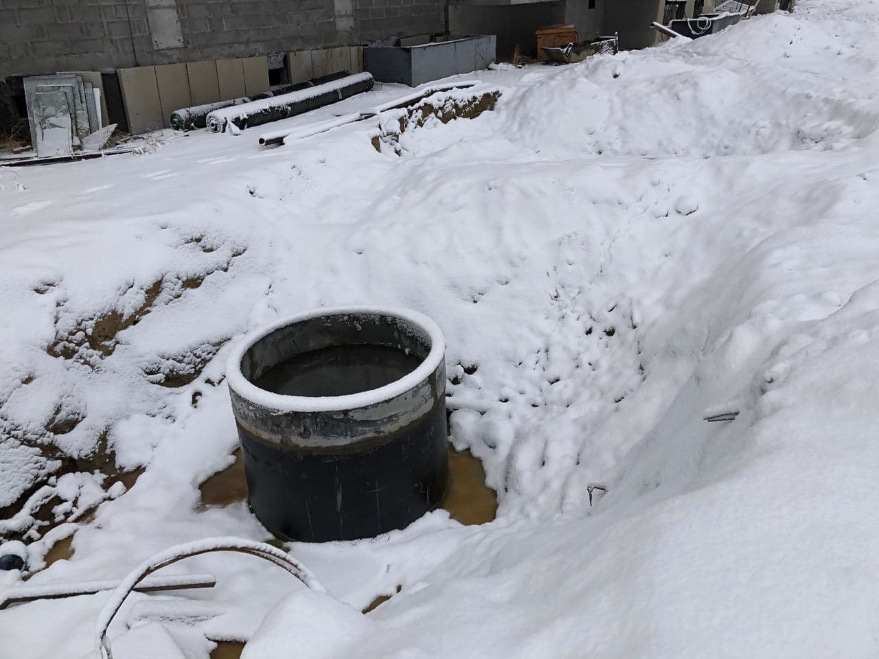 На строительной площадке ООО СК (ЮСК) ведет работы по устройству наружных сетей канализации (до точки подключения).