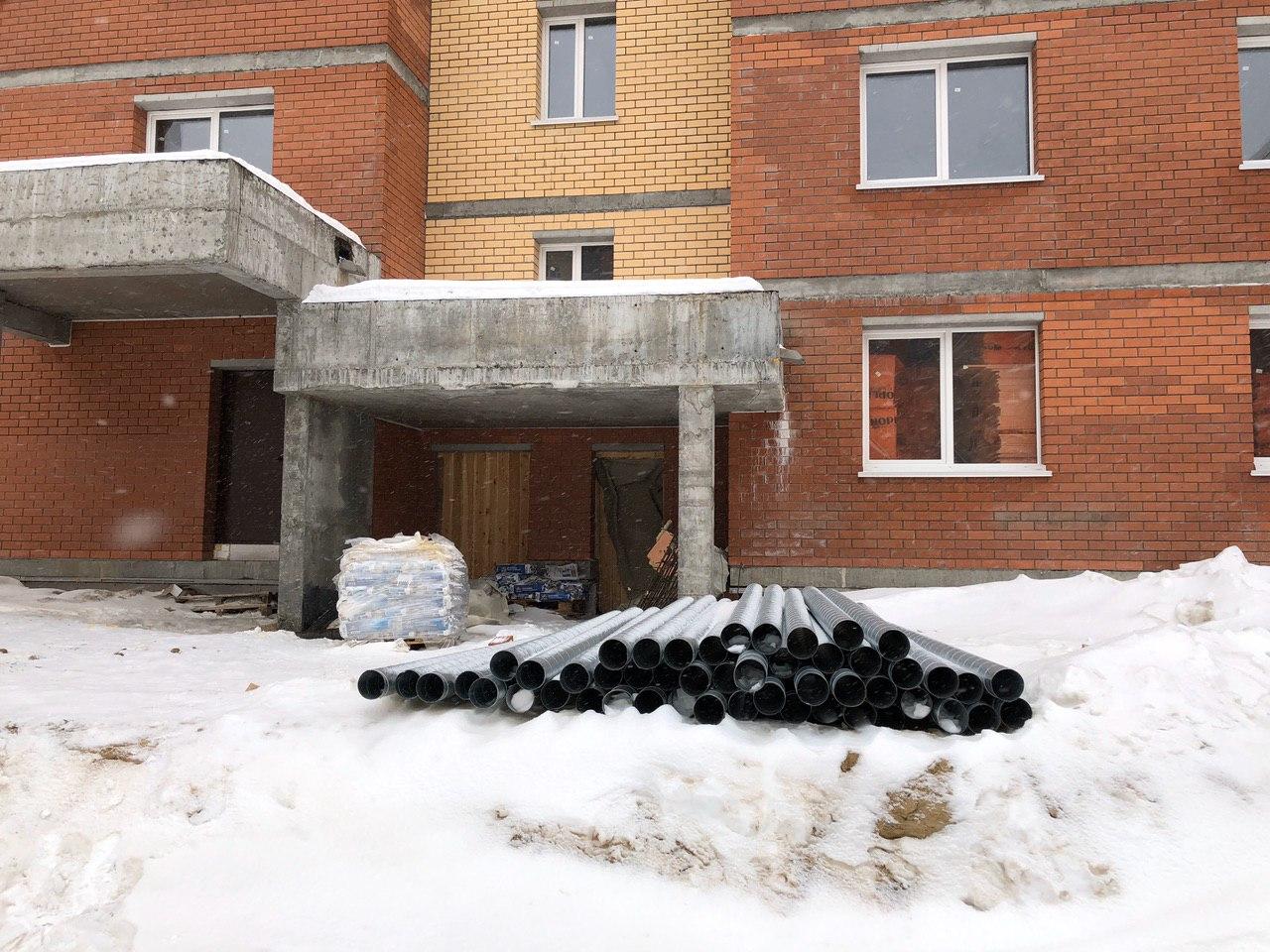 Продолжаются работы по прокладке внутренних сетей отопления, вентиляции, водоснабжения и водоотведения.