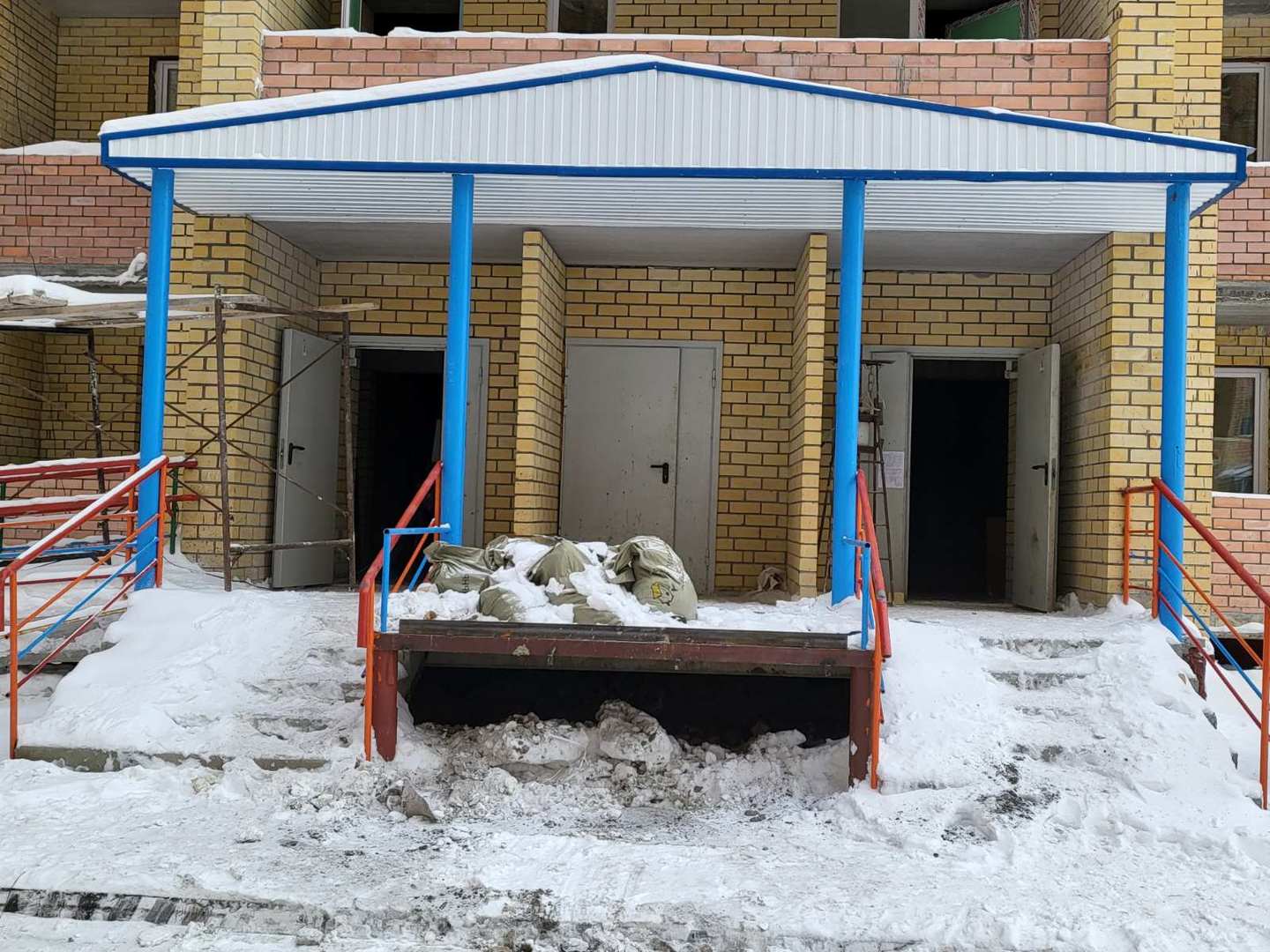 В 8 подъезде проводятся работы по заливке отверстий, штукатурке стен, сборке лифтов, запущено отопление.