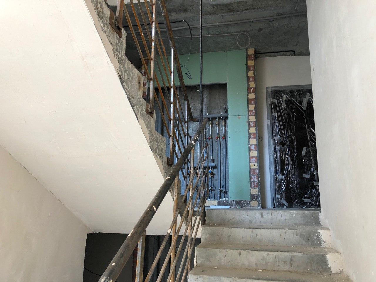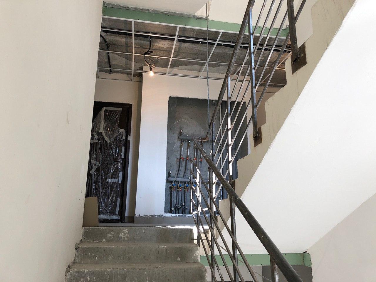 Ведутся чистовые отделочные работы мест общего пользования. В 1-2 секциях выполнены работы по укладке плитки в местах общего пользования, производится окраска лестничных пролетов, монтаж подвесных потолков.