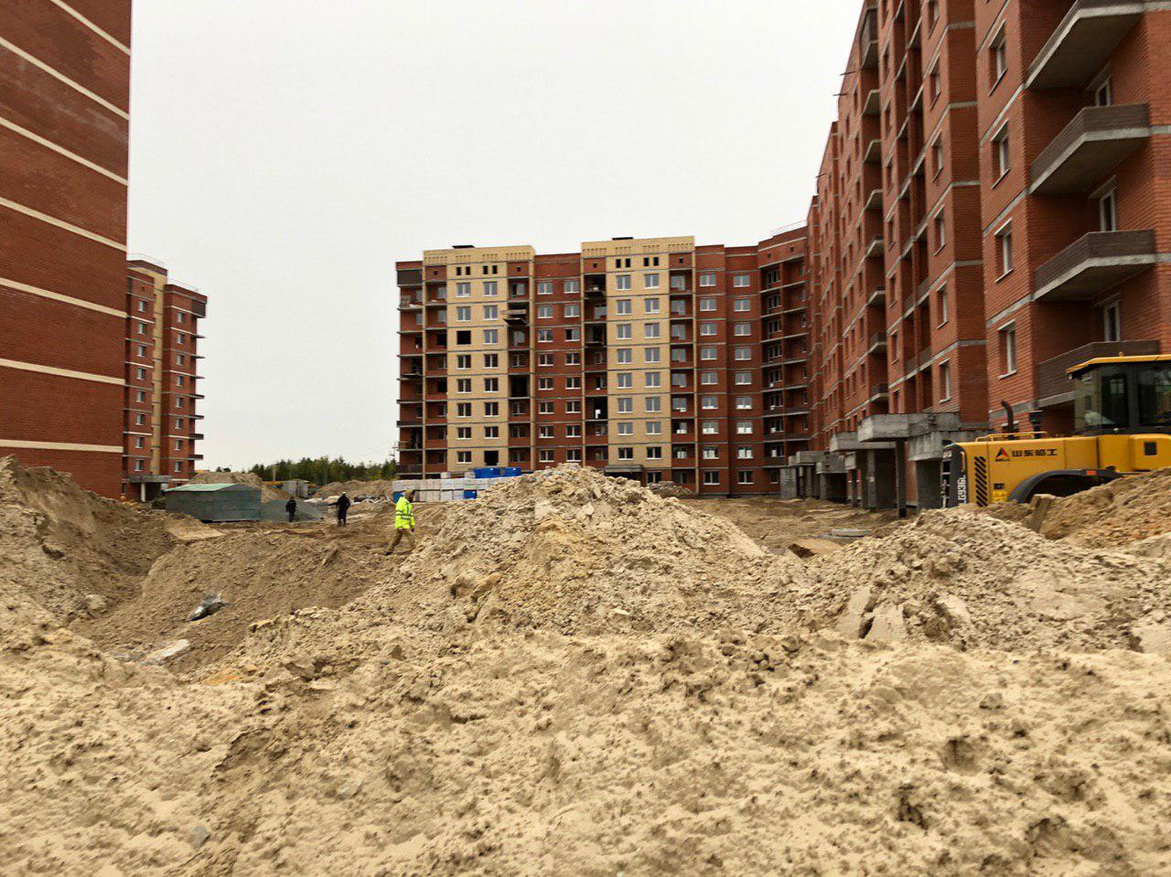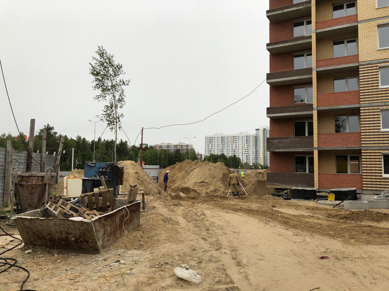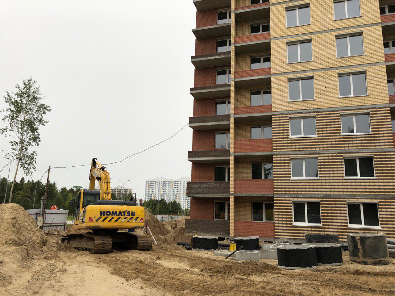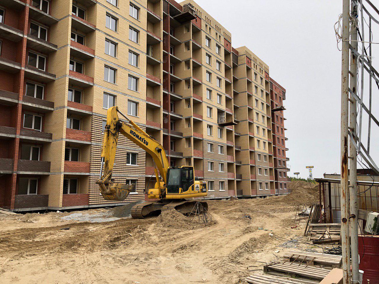 В настоящий момент ведутся земляные работы для укладки наружных и внутренних инженерных сетей (горячего и холодного водоснабжения). Проводятся работы по проводке электрических сетей внутри жилого дома. Работают экскаватор и бульдозер. На площадке работает порядка 10 человек.