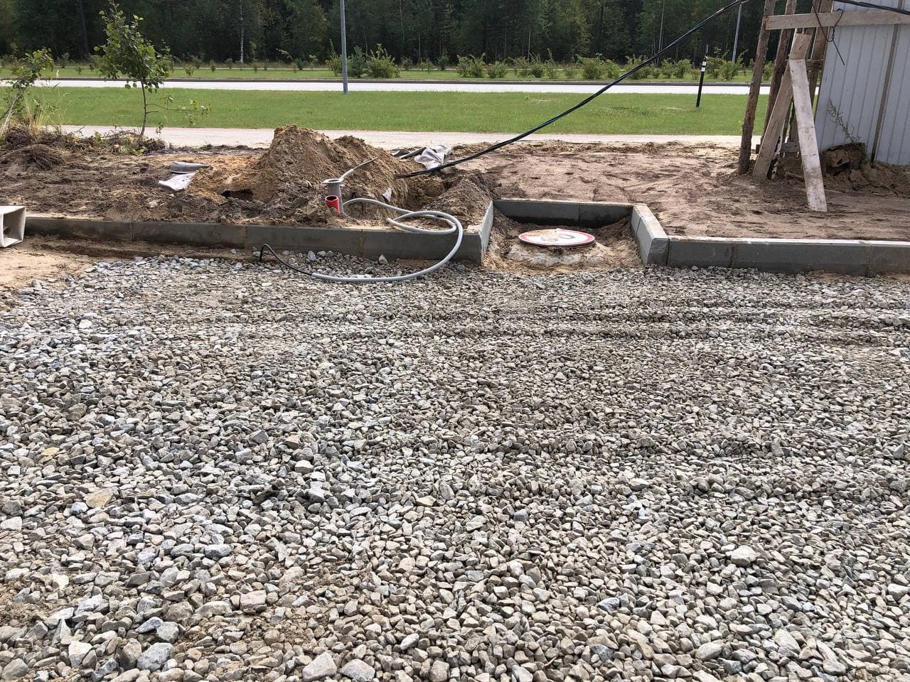 Проводятся работы по устройству кабельной линии наружного освещения. Выполняются внутренние сантехнические работы. Выполняются работы по благоустройству территории.