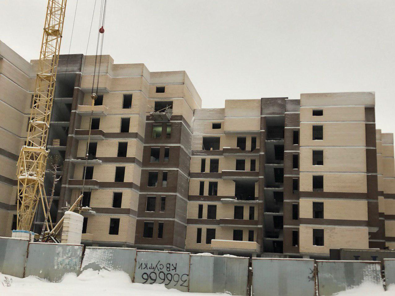 Ведутся работы по укладке ограждающих конструкций 6 этажной секции.