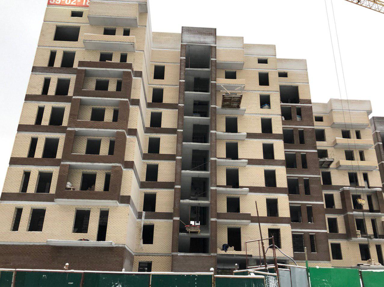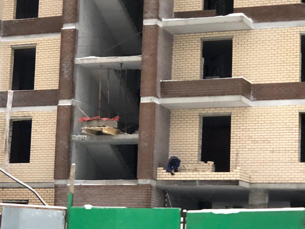 Ведутся работы по укладке ограждающих конструкций в 7 этажной секции.