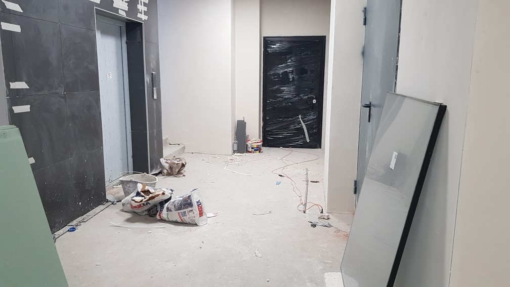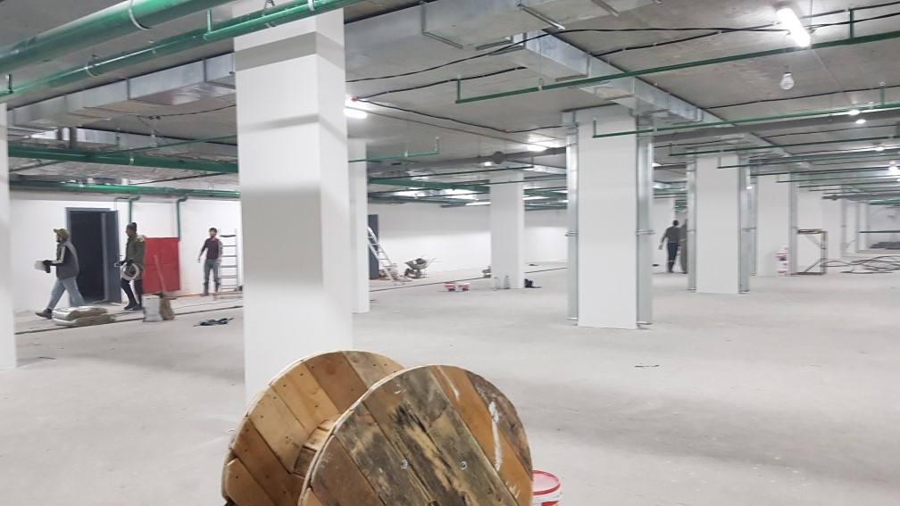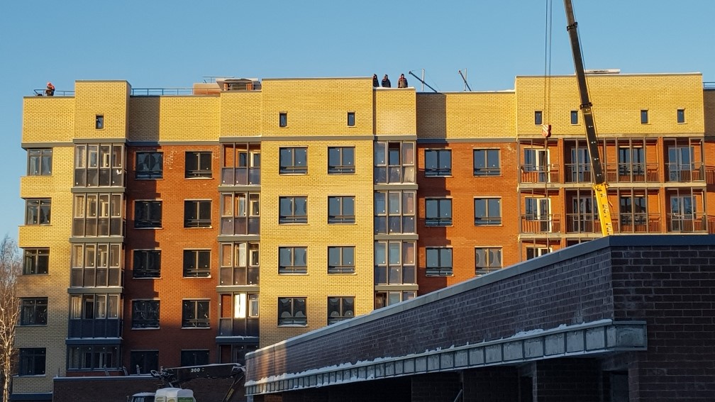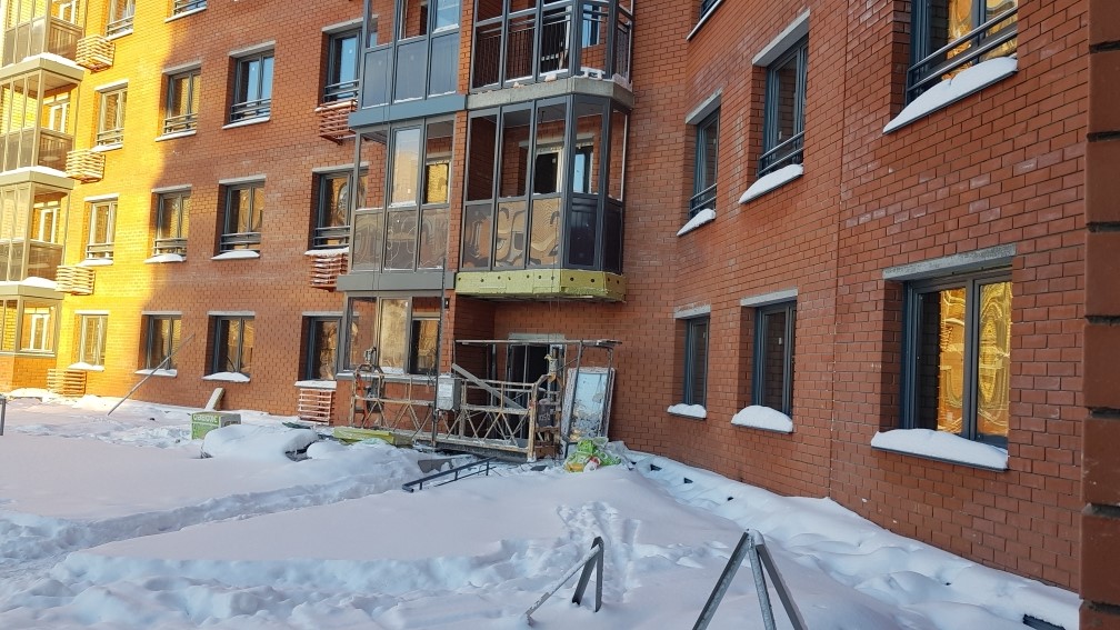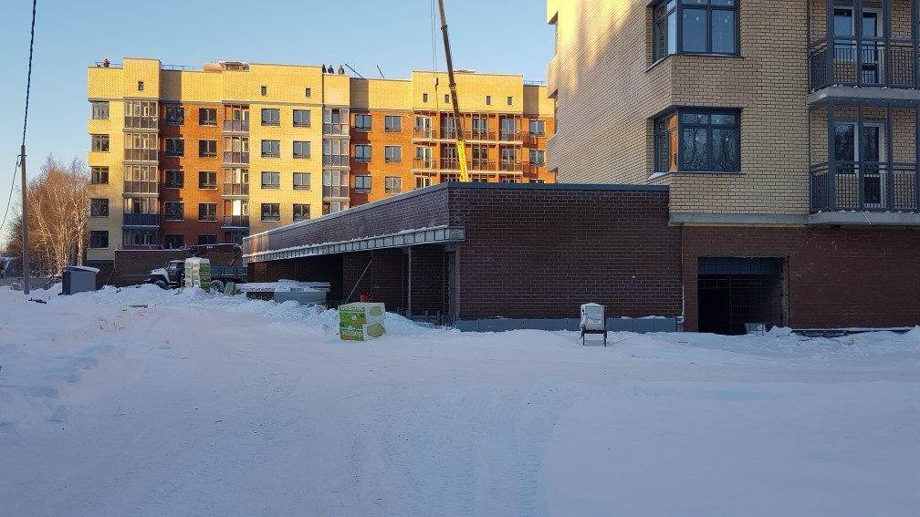 Ведется монтаж внутренней электропроводки. Утепление с последующим оштукатуриванием стен входных групп, спец помещений, гаражей, кладовых. Монтаж воздуховодов вентиляции. Монтаж оконных конструкций и остекления балконов. Монтаж кровельных ограждений. Ведутся фасадные работы. Монтаж слаботочных сетей и настройка автоматики. Отделочные работы по подъездам, установка квартирных дверей. Общестроительные работы. Ведется обвязка систем пожаротушения. Устройство чистовых полов паркинга. Монтаж козырьков по фасаду.
