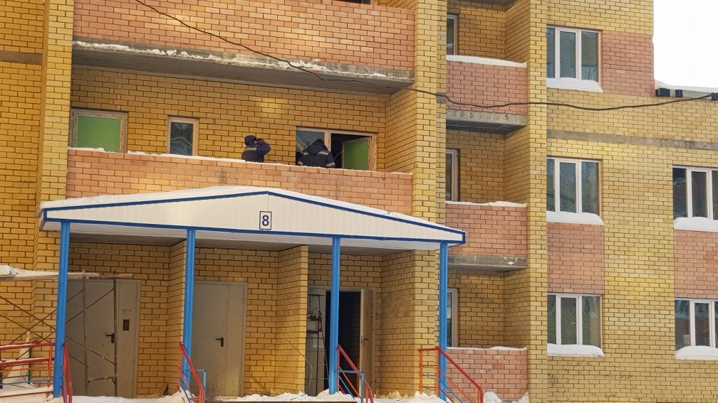 В 8 подъезде проводятся работы по заливке отверстий, подготовке к запуску отопления, сборке лифтов.