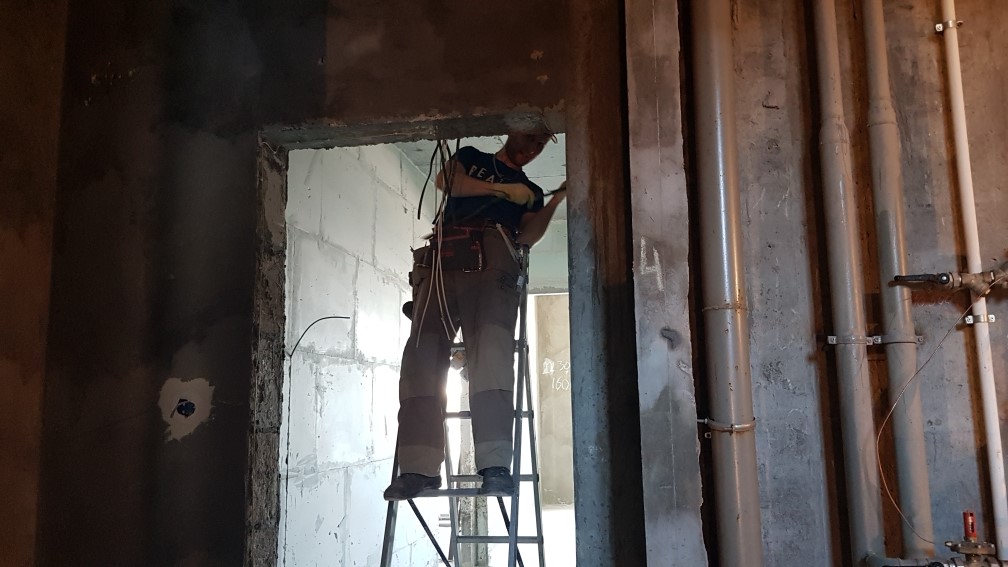 Ведется сборка и монтаж металлоконструкций. Проводятся фасадные работы. Ведутся сантехнические и электромонтажные работы.