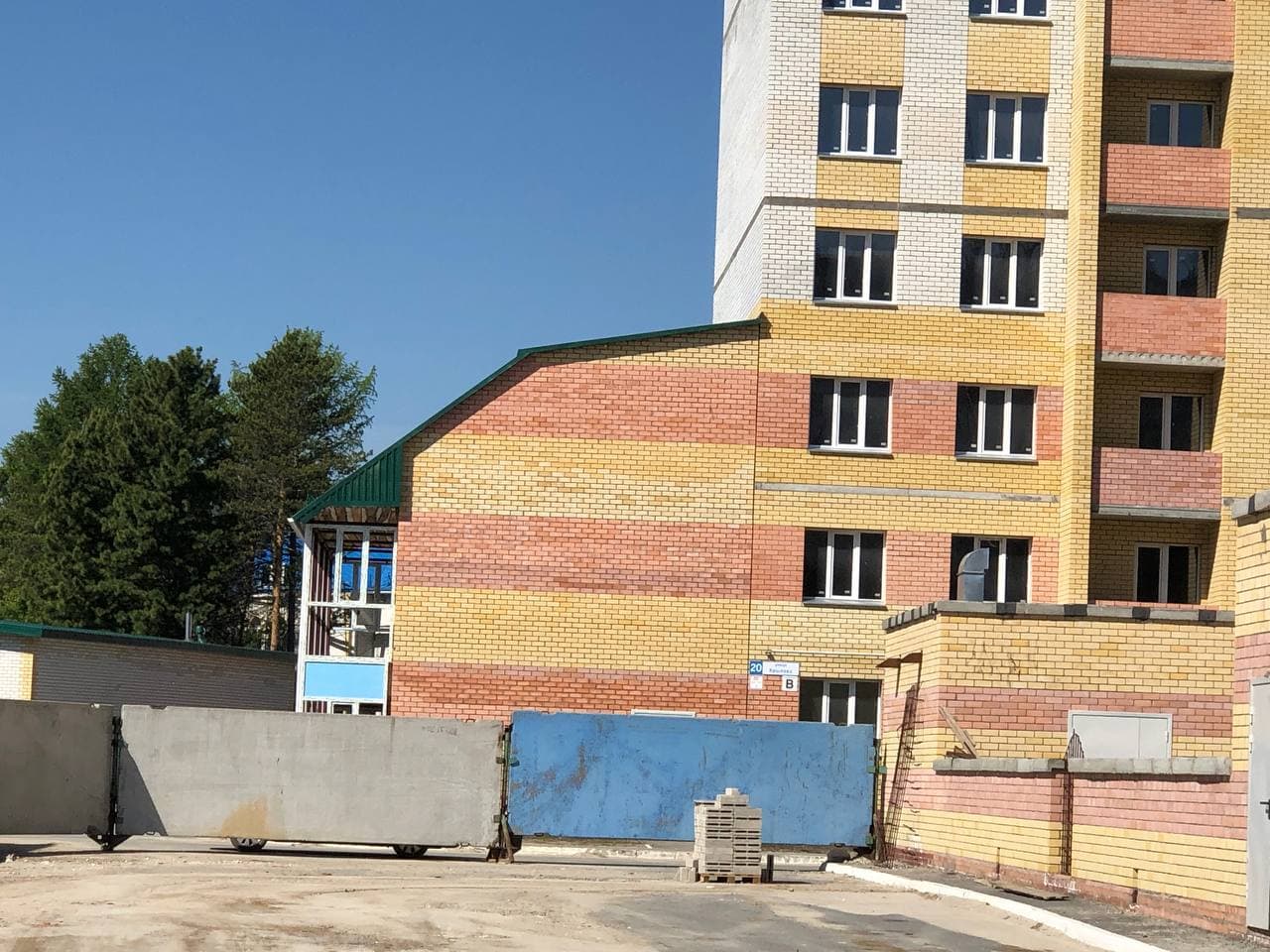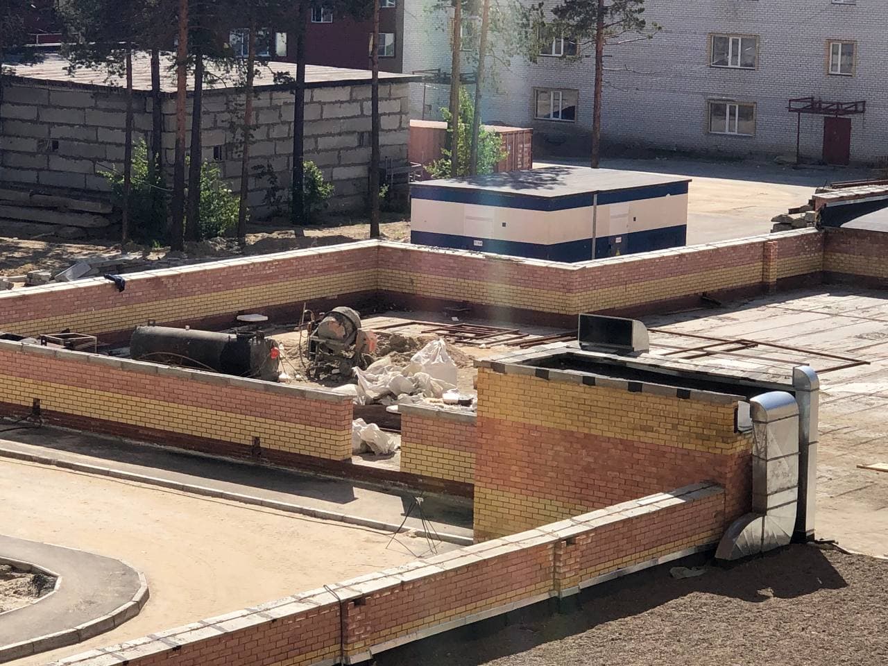 На строительной площадке находятся ориентировочно 15-20 рабочих.