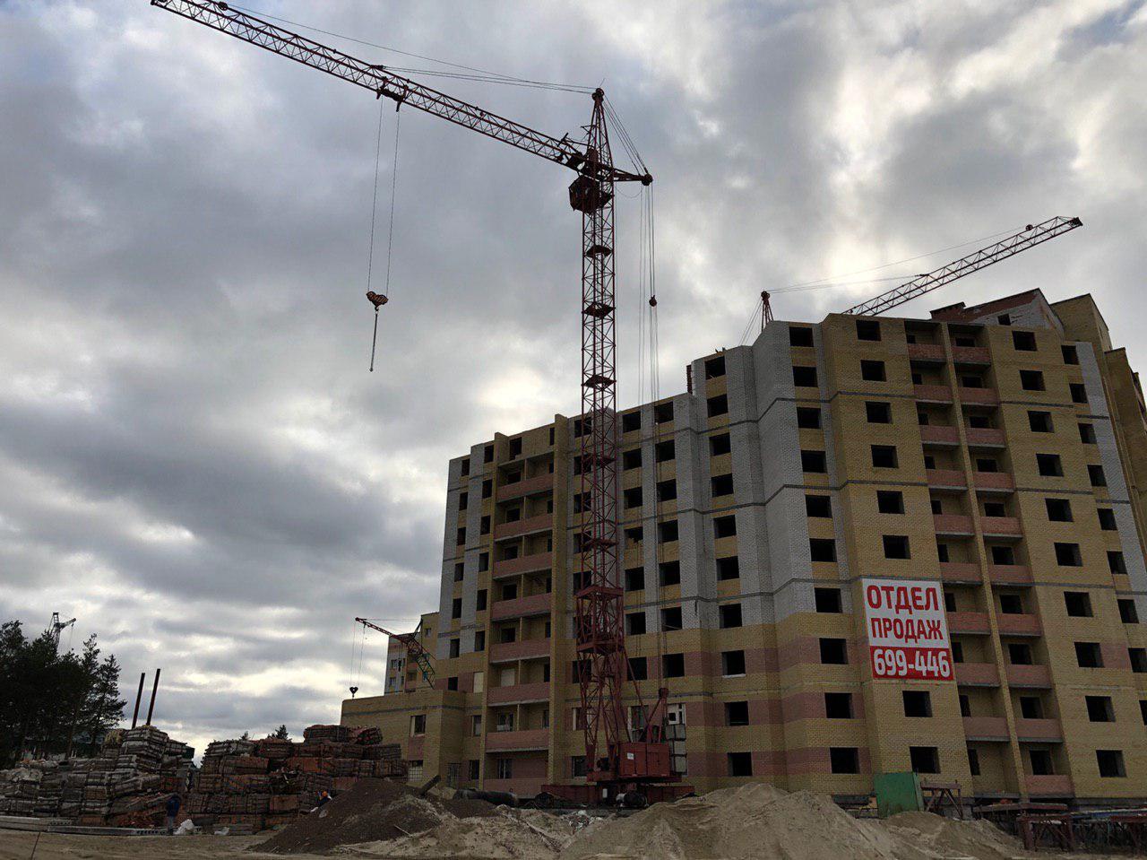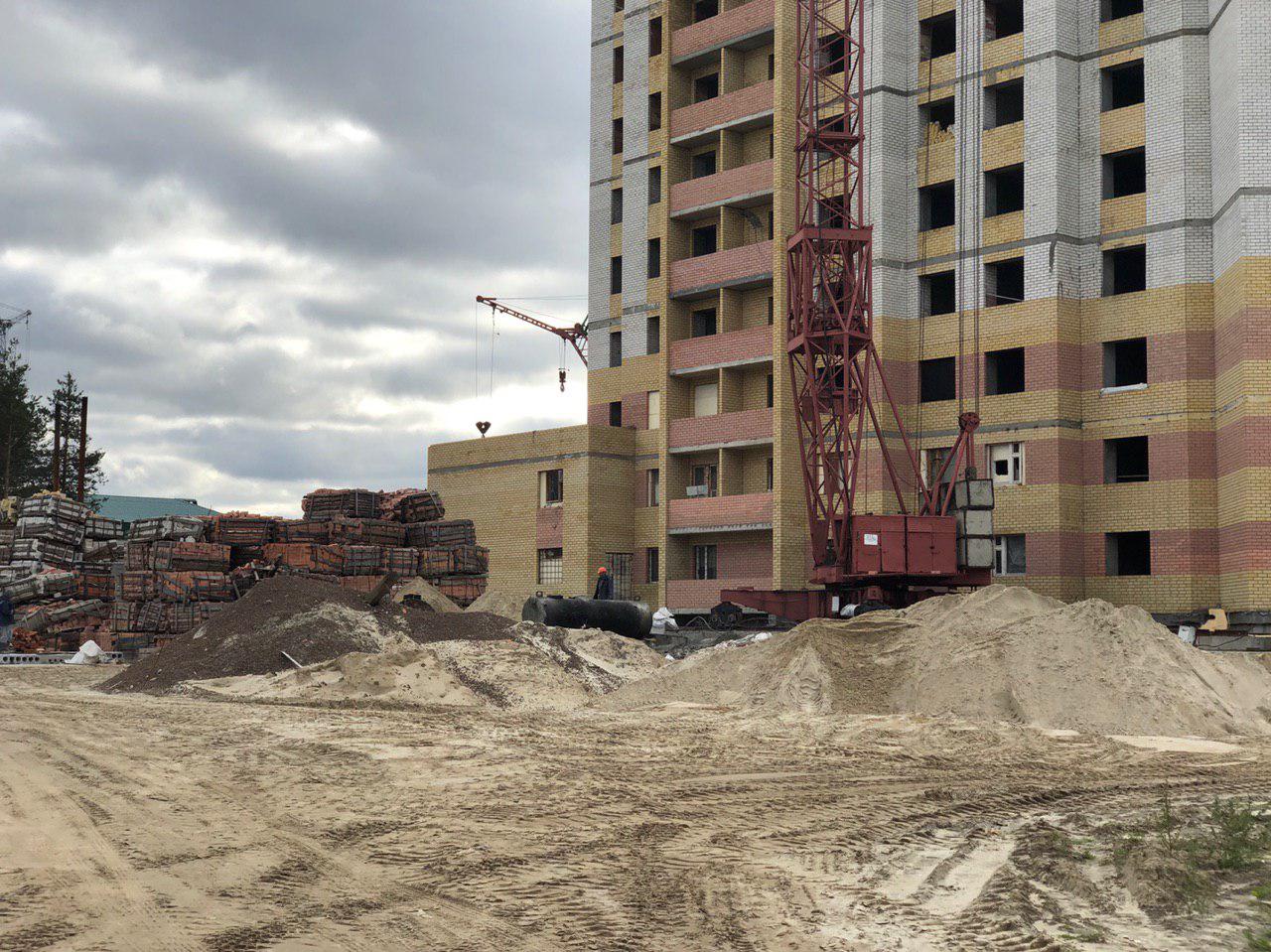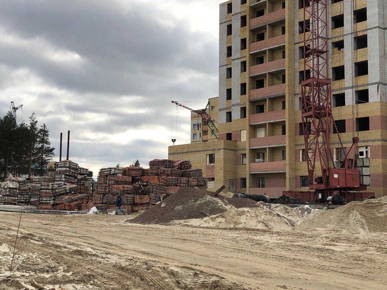 Ведется кладка ограждающих конструкций многоквартирного жилого дома и перегородок. Ведутся работы на кровле. Работают 3 крана, бульдозер.
