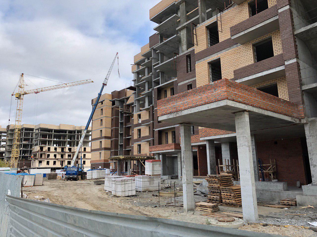 Закончено возведение ограждающих конструкций первой секции. Ведется возведение перегородок. Установлены окна на первом этаже.