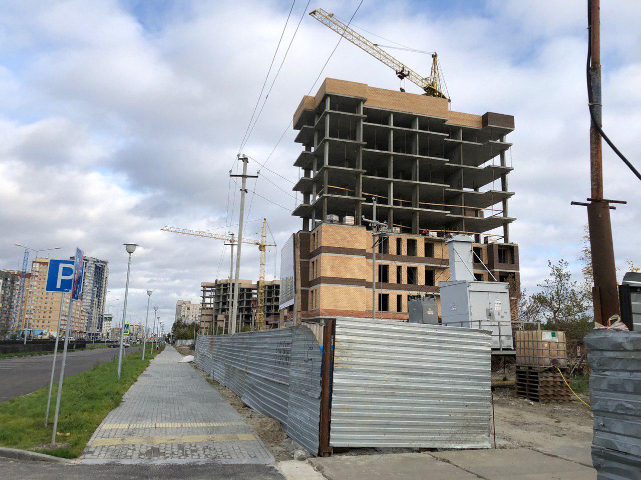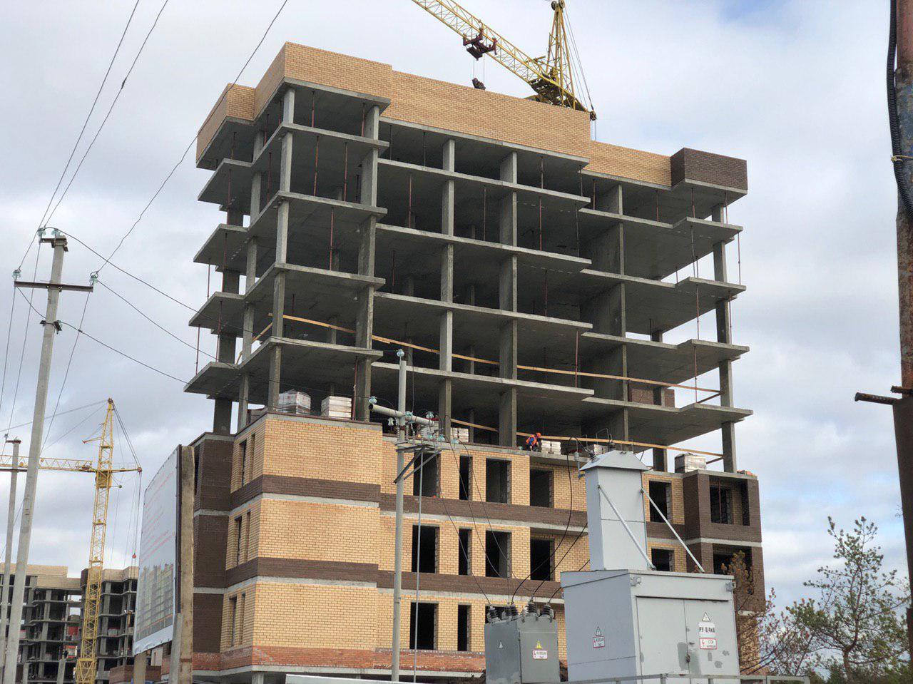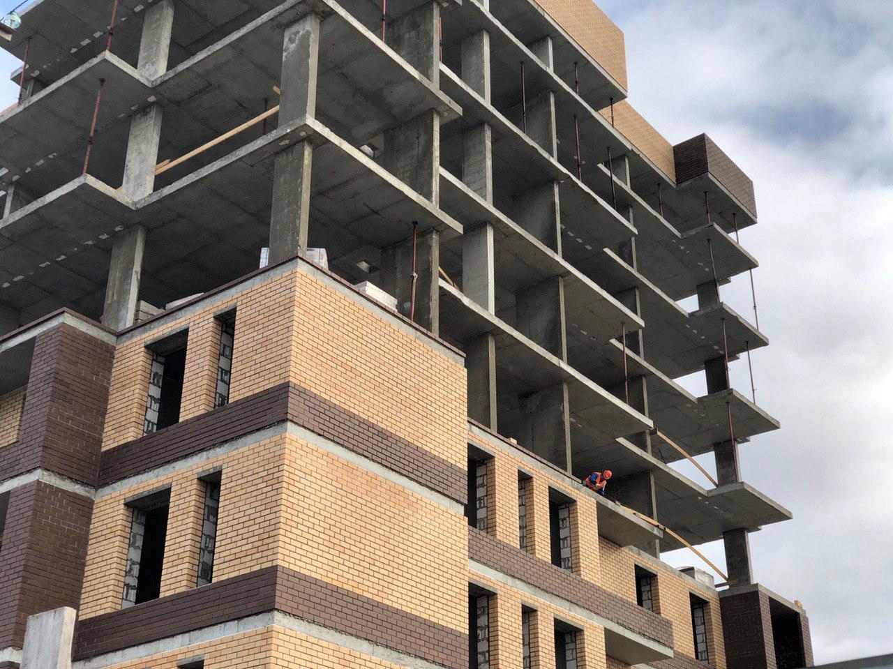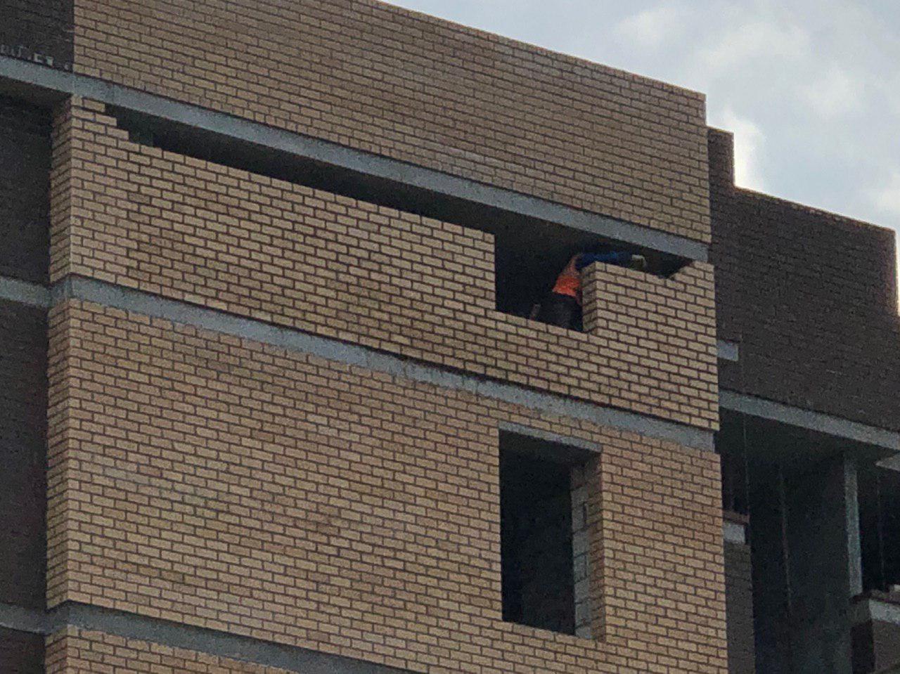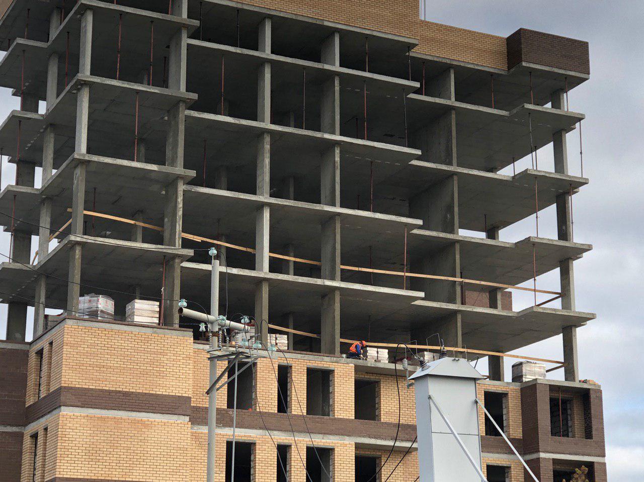 Продолжаются работы по возведению ограждающих конструкций и внутренних перегородок второй секции и последних секций. На момент осмотра возведены ограждающие конструкции на 3 этажах и кровле.