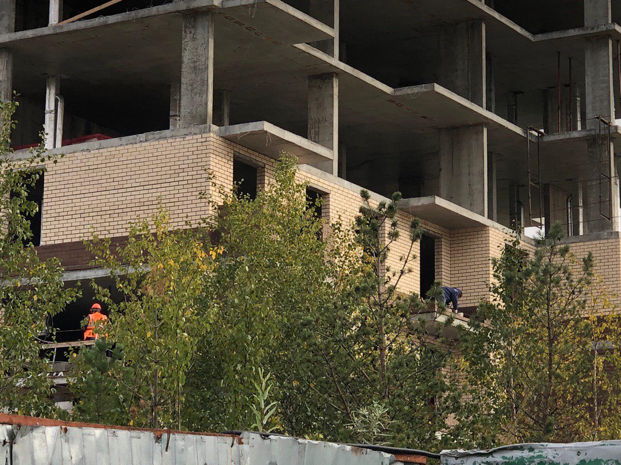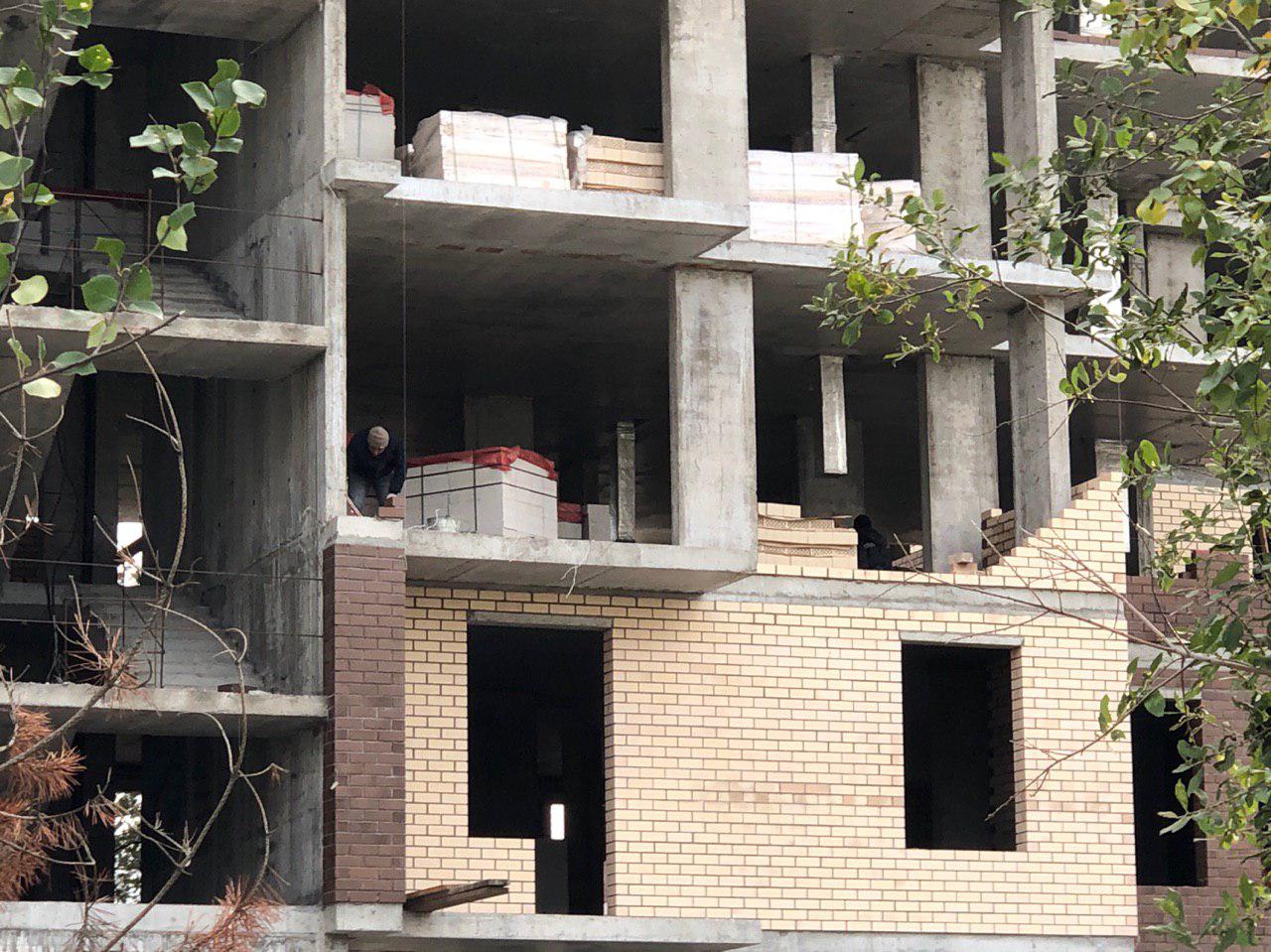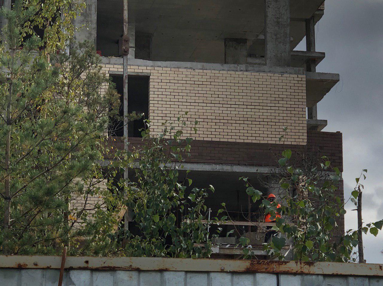 Ведутся работы по укладке ограждающих конструкций 3 этажа 6 этажной секции.