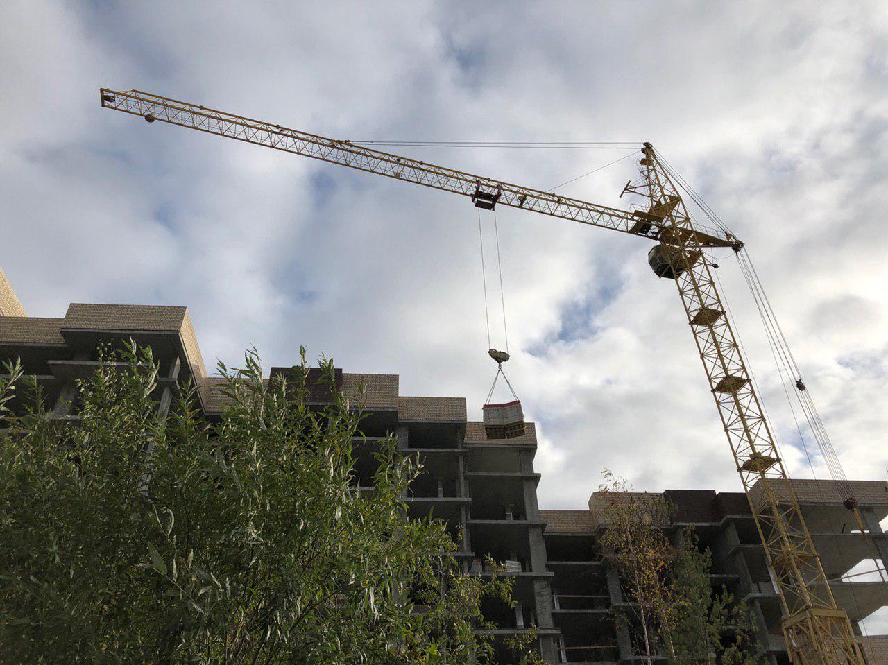 Проведена работа по подъему строительных материалов на каждый этаж. Производится завоз строительных материалов. Работает кран.