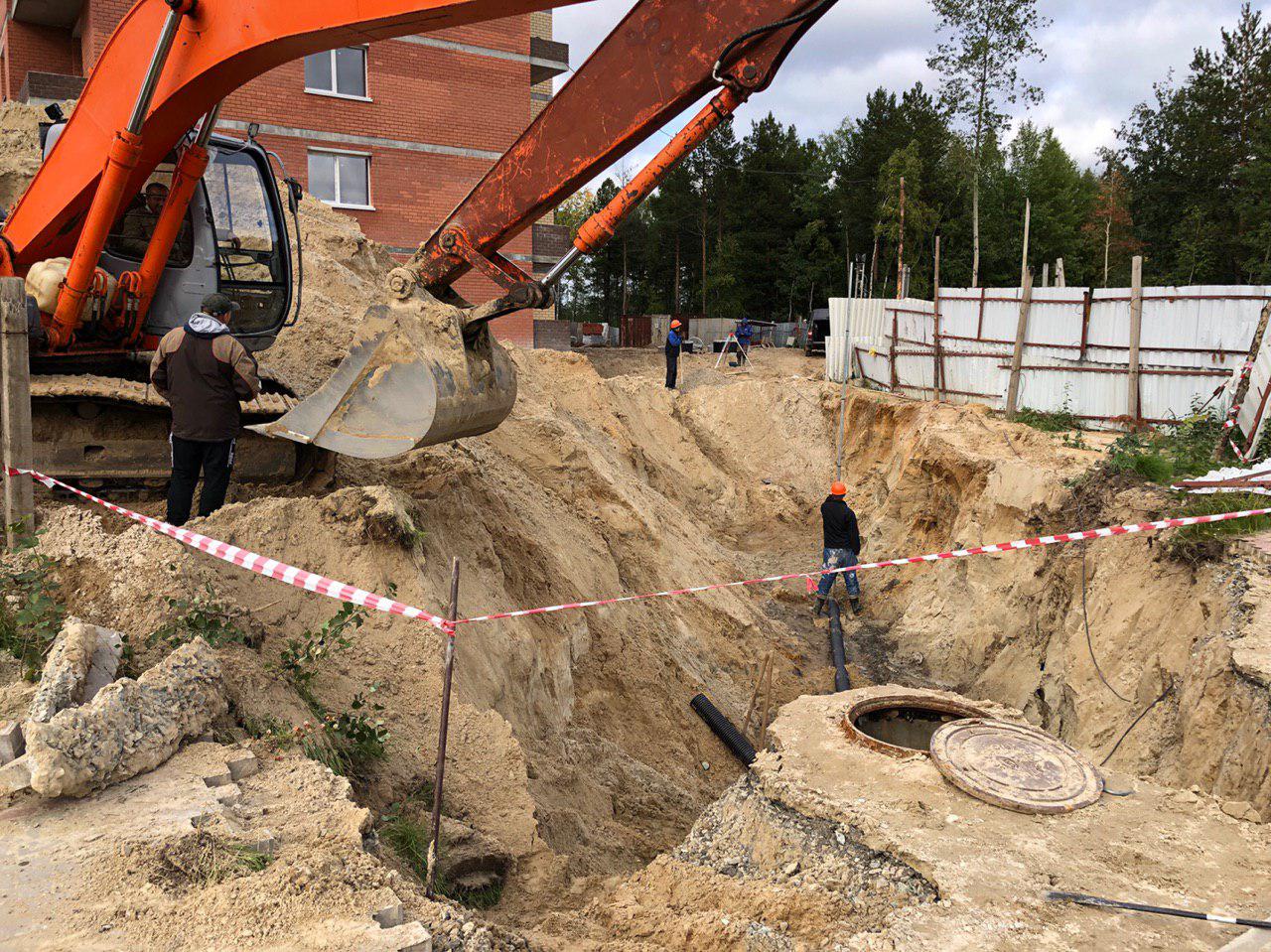 Выкопан котлован для прокладки сетей водоотведения.
