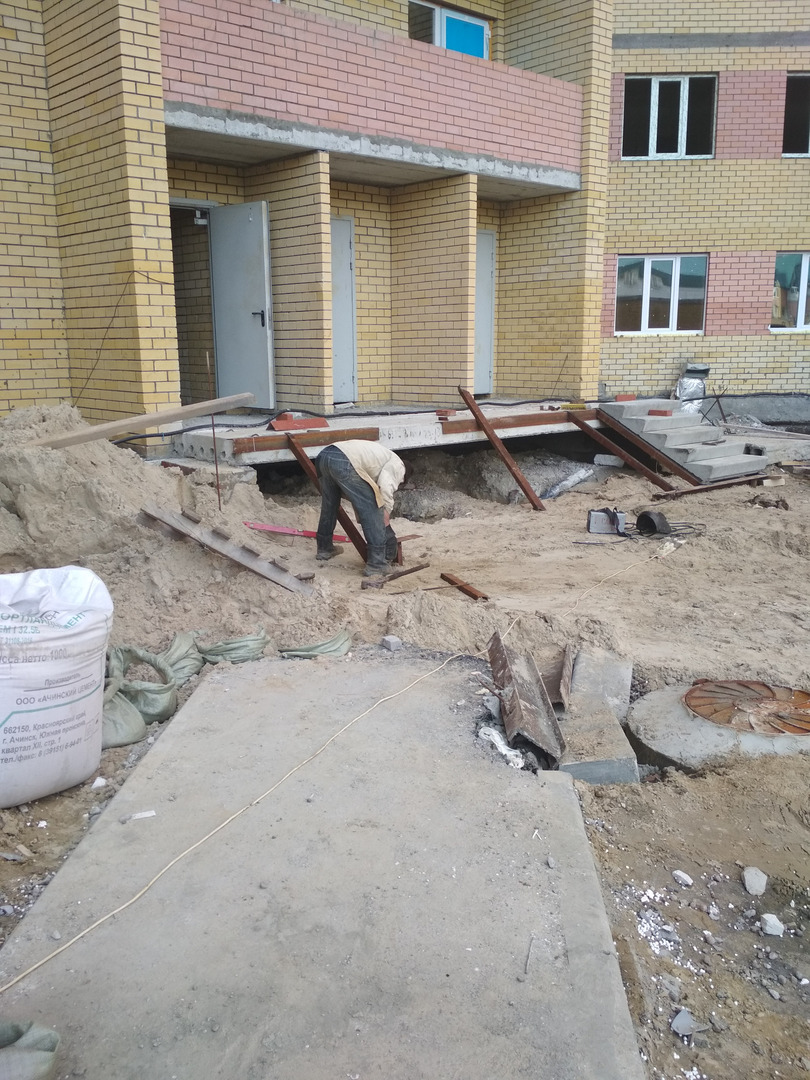 В первом подъезде работы не ведутся, дверь открыта.