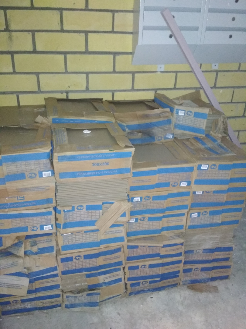 В третьем подъезде ведутся работы по кладке плитки в помещении мусоропровода, подъезда. Электрики проводят пусконаладочные работы освещения. 2 штукатура-маляра производят отделочные работы на лестничной клетке.