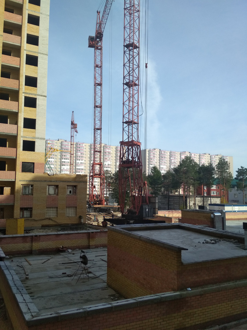 На строительной площадке первых четырех подъездов находятся 8 рабочих.