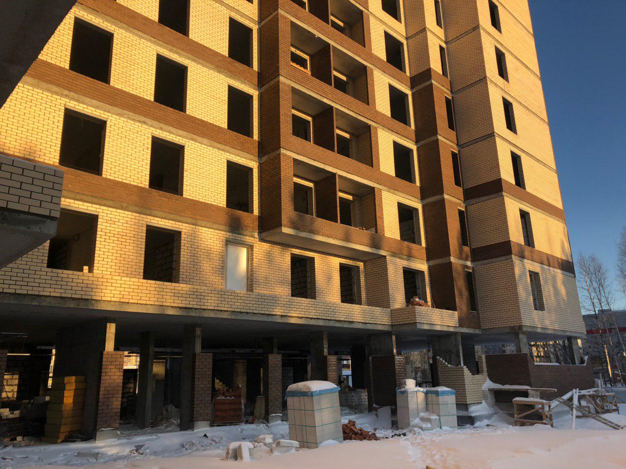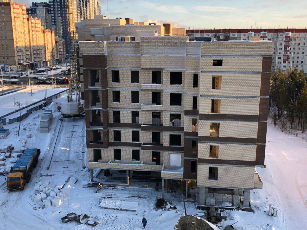 Ведутся работы по укладке ограждающих конструкций в 7 этажной секции.