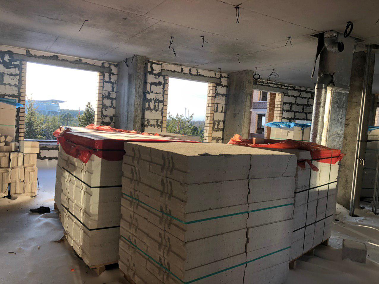 Ведутся работы по укладке ограждающих конструкций 6 этажной секции.