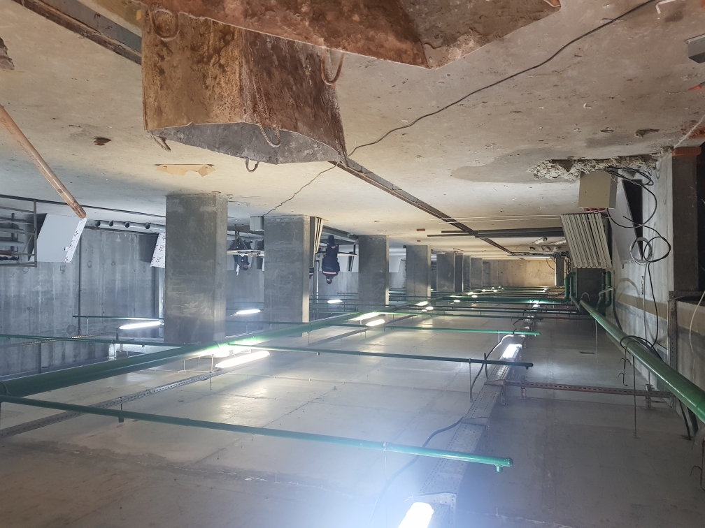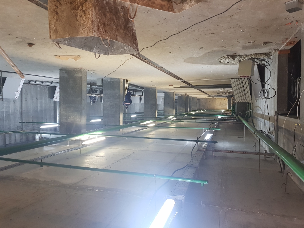 Ведутся работы по облицовке фасадов керамогранитом и композитными панелями.