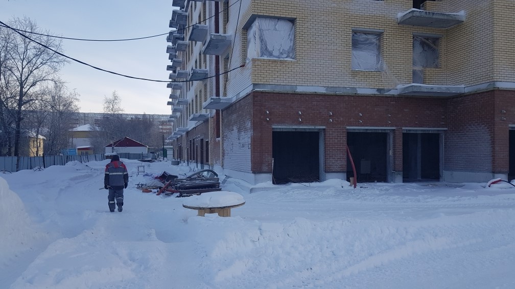 Продолжаются работы по устройству наружных ограждающих конструкций.