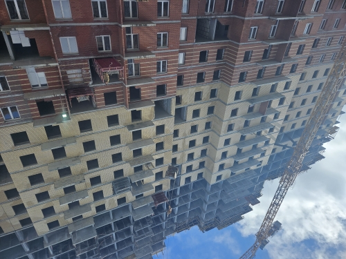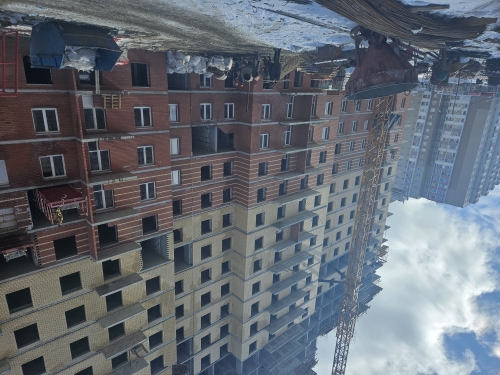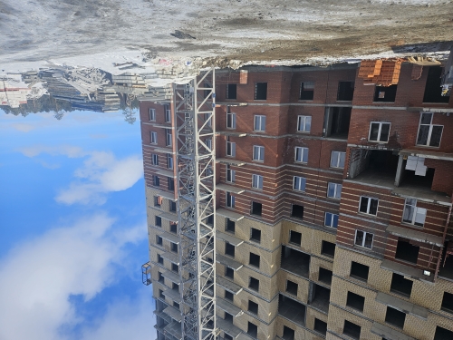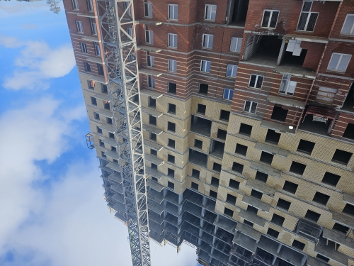 На строительной площадке ведутся строительно-монтажные работы.