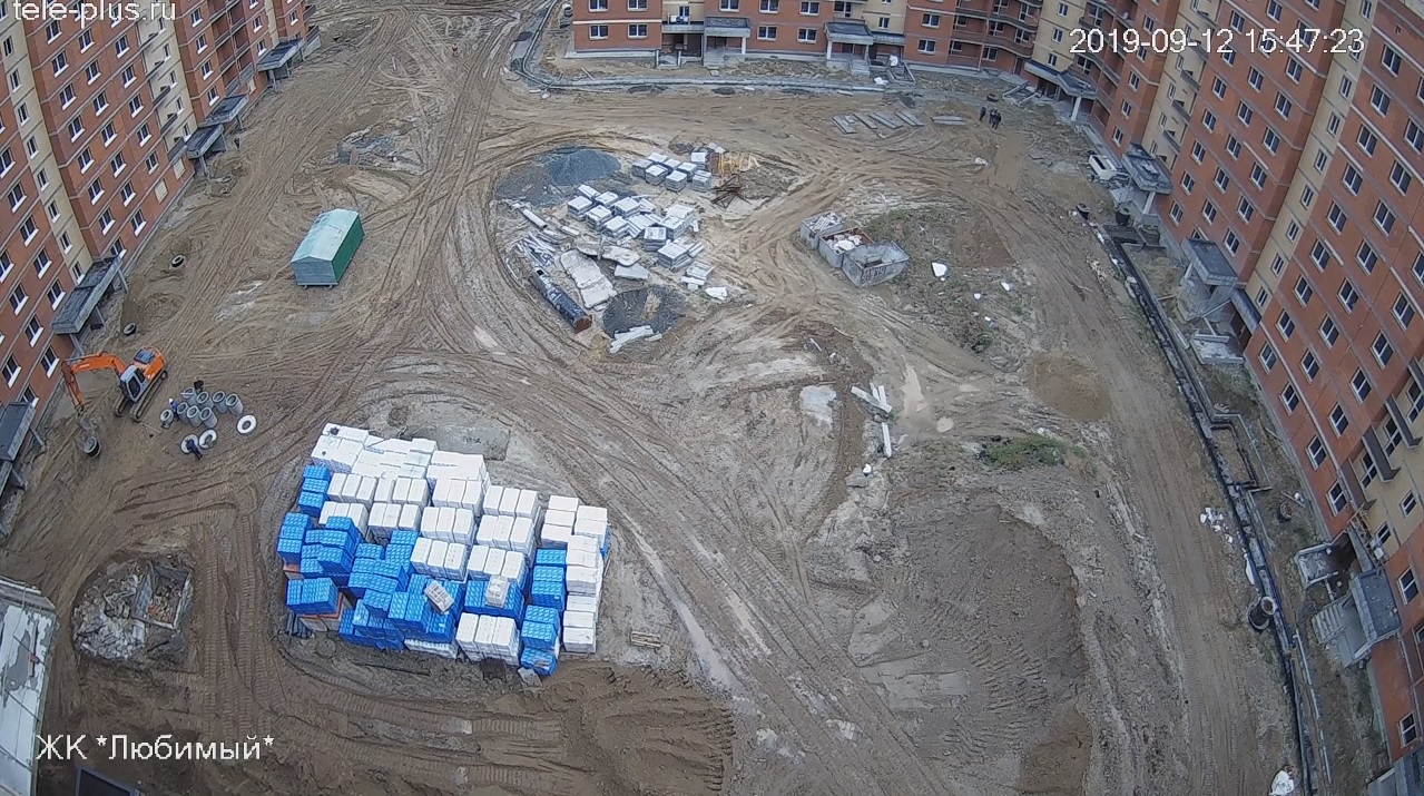 5 человек ведут работы по благоустройству прилегающей территории. Установка бордюров. Ведутся работы по отсыпке гравием тротуарных дорожек. На территории имеется строительная техника (асфальтоукладчик и каток).