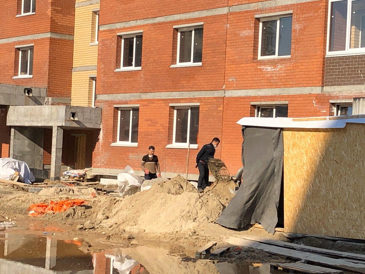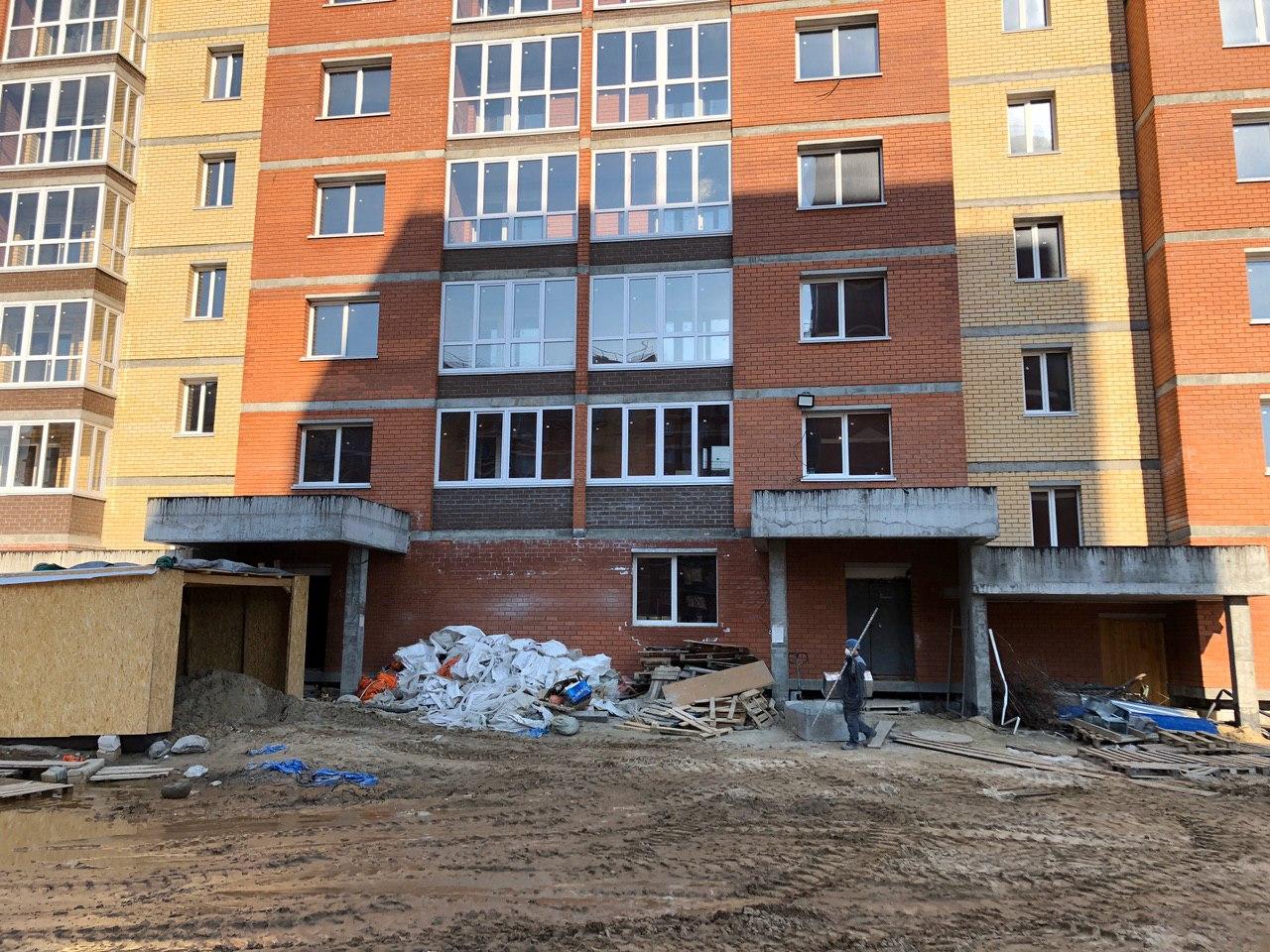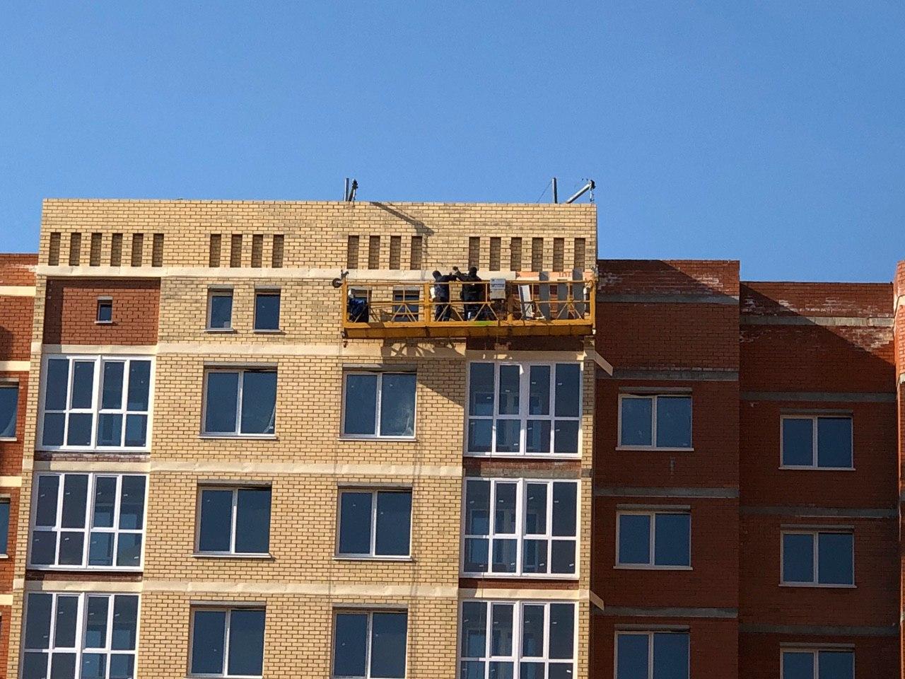 На строительной площадке находится ориентировочно 60 человек, в первом подъезде ведутся работы по штукатурке стен и стяжке пола на 5 и 7 этажах. В четвертом подъезде заканчивают оштукатуривание стен, стяжку 7 этажа, выполнили стяжку 8 и 9 этажей.