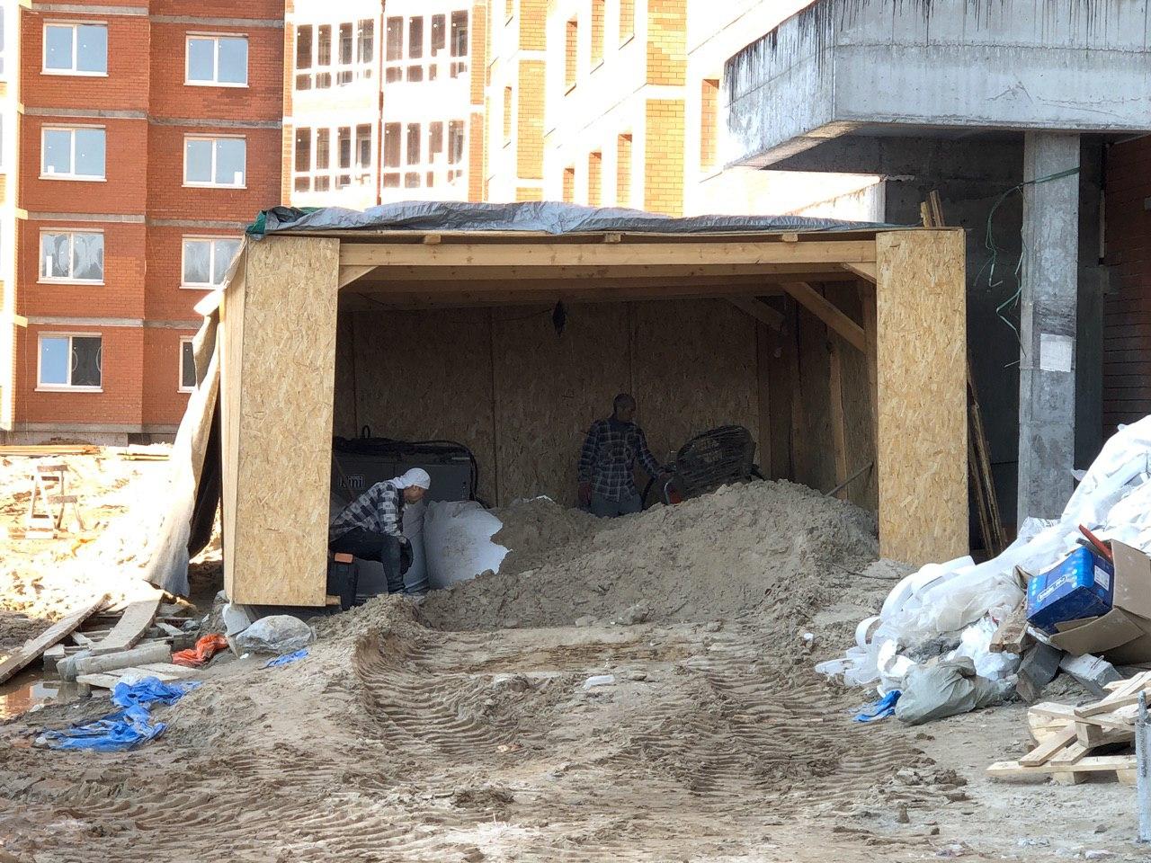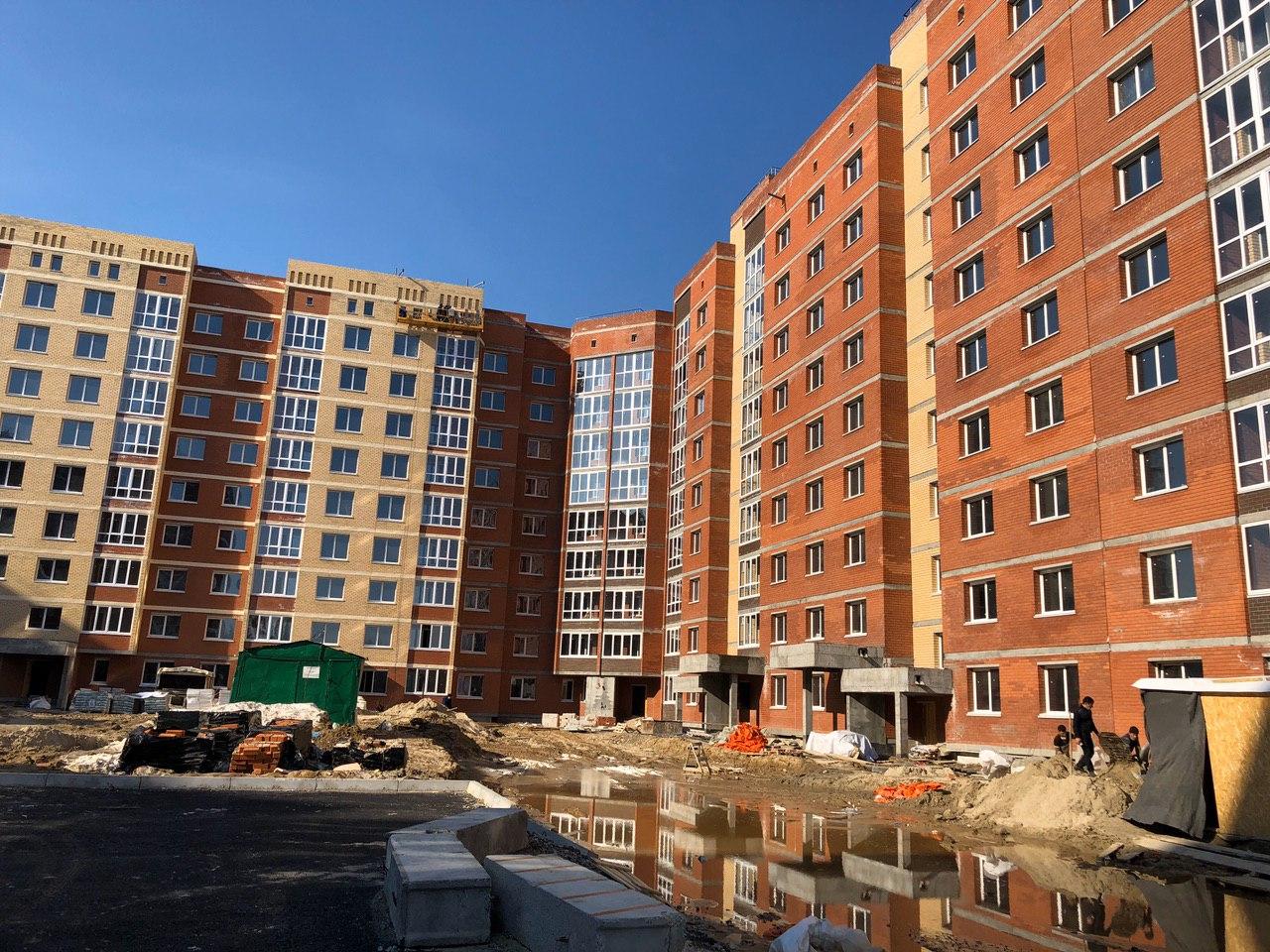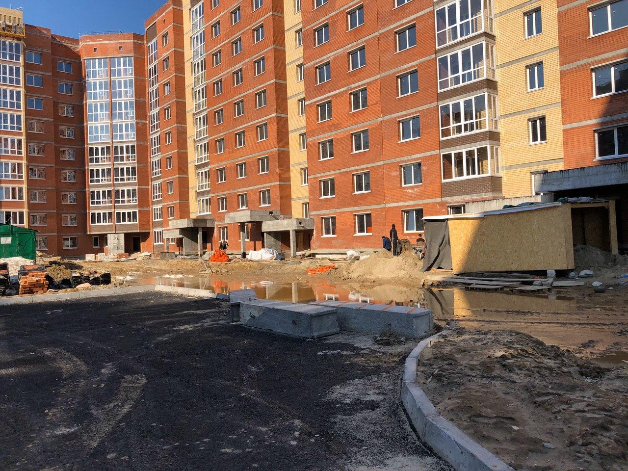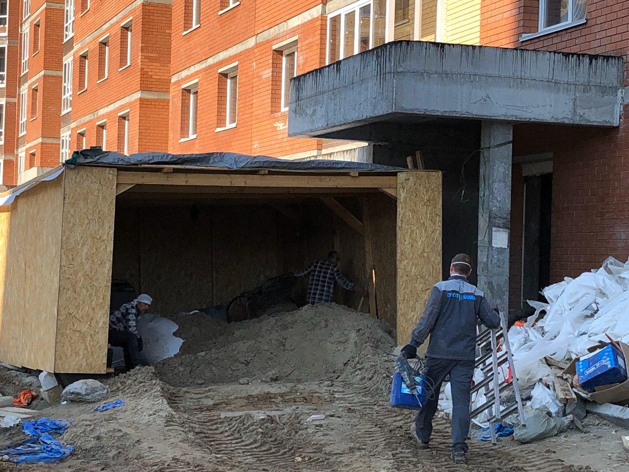 На строительной площадке находится ориентировочно 60 человек, в первом подъезде ведутся работы по штукатурке стен и стяжке пола на 5 и 7 этажах. В четвертом подъезде заканчивают оштукатуривание стен, стяжку 7 этажа, выполнили стяжку 8 и 9 этажей.