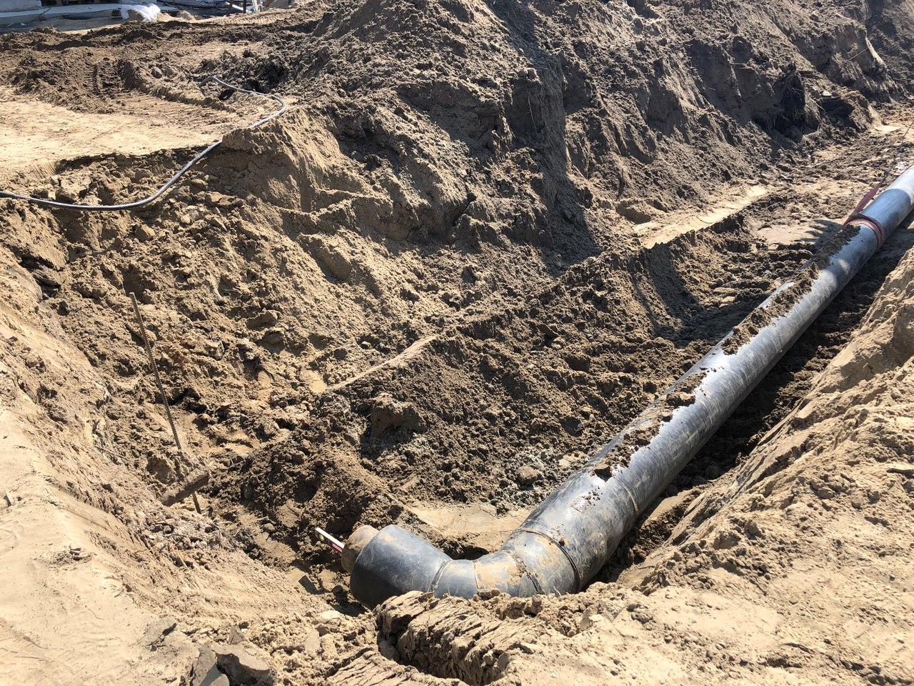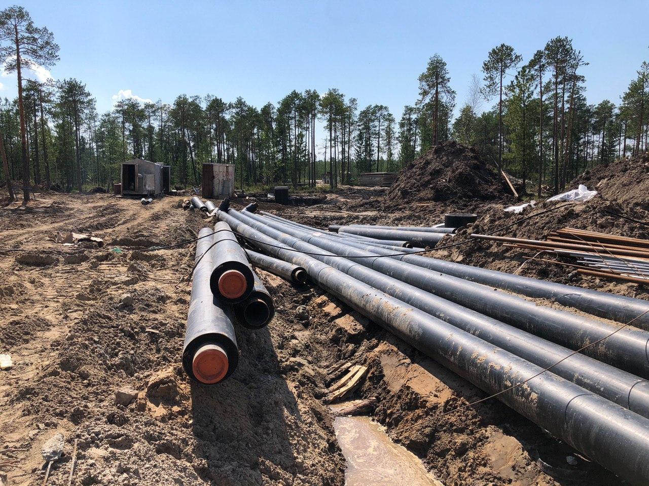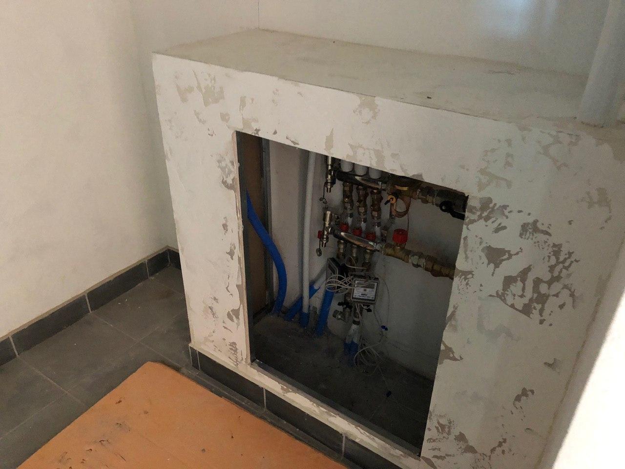 Ведутся работы по прокладке труб теплоснабжения внутри помещений.