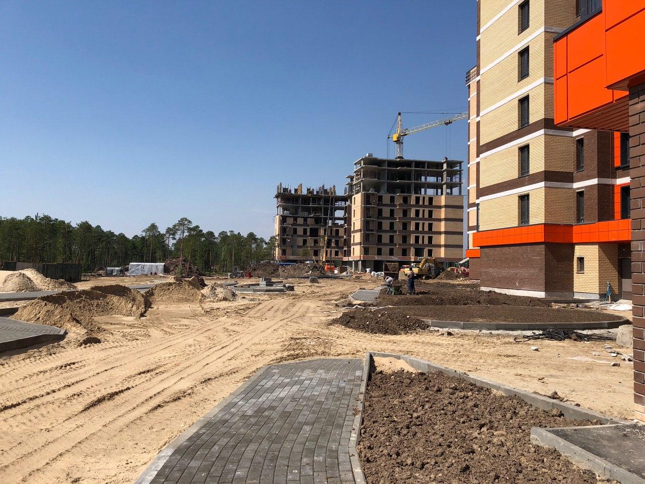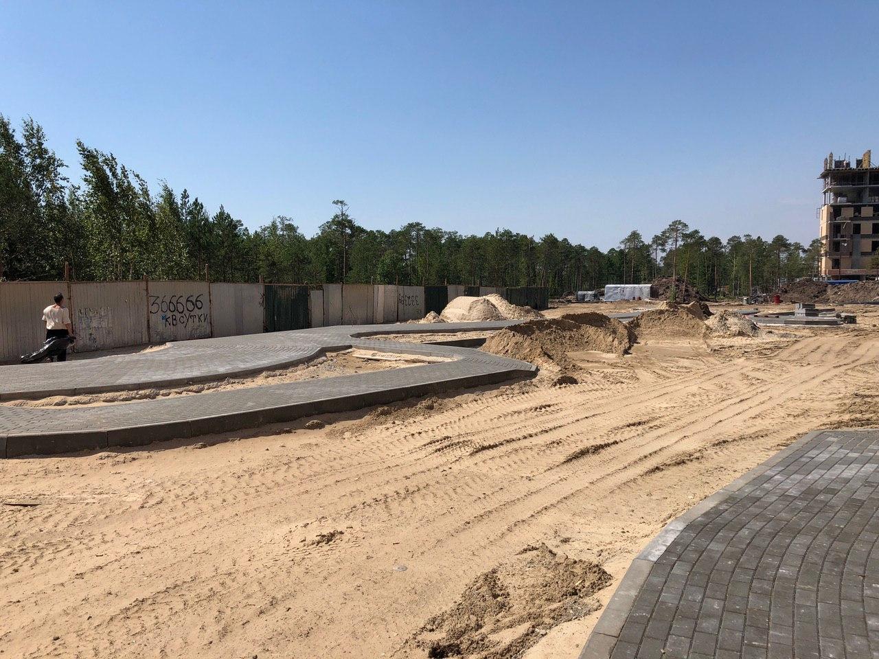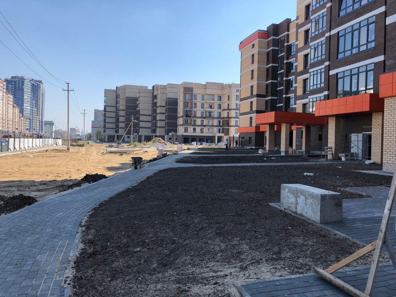 Ведутся работы по благоустройству территории, асфальтирование тротуаров.