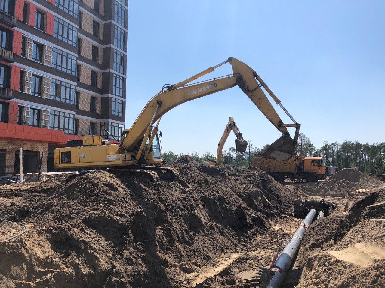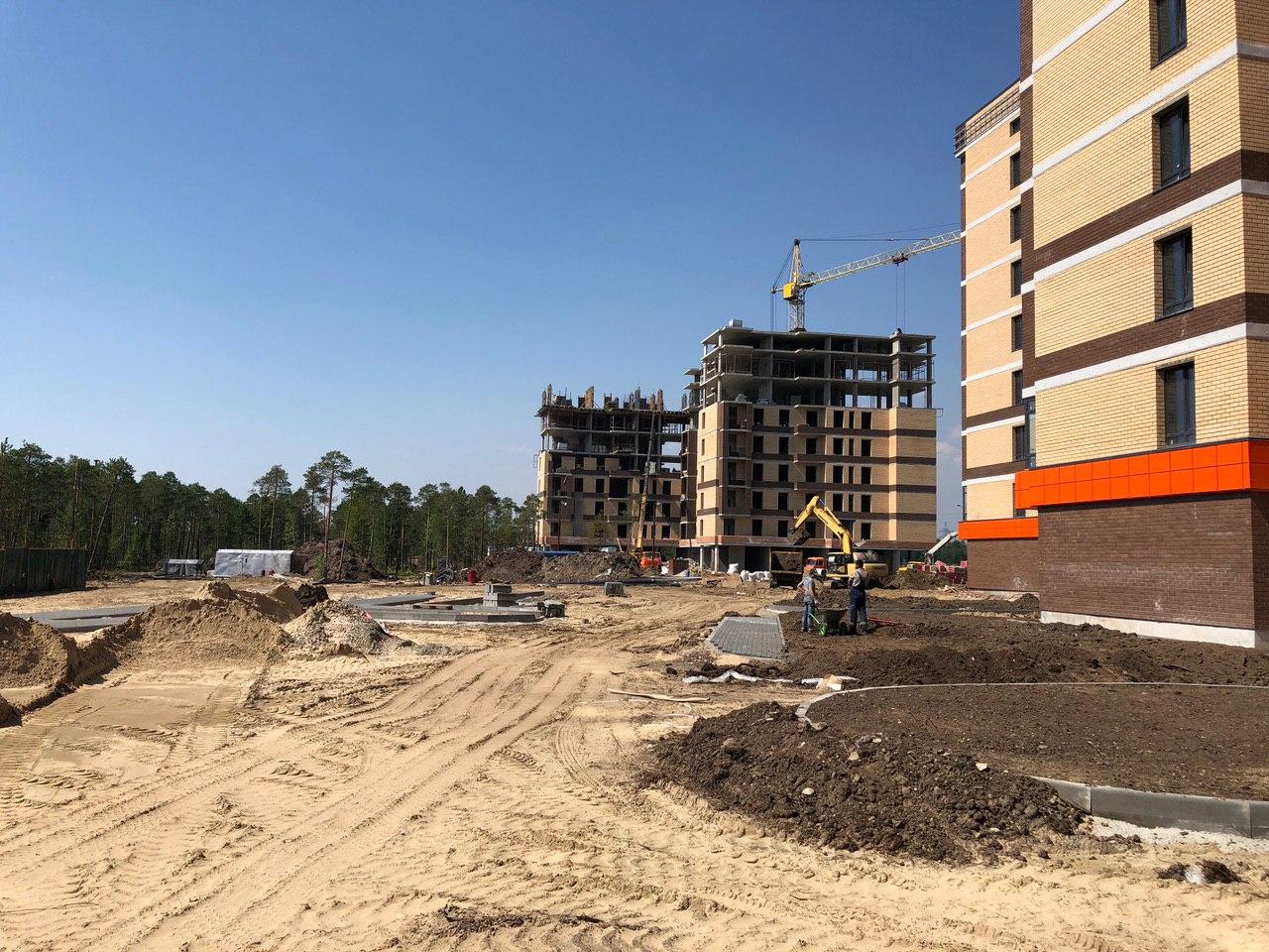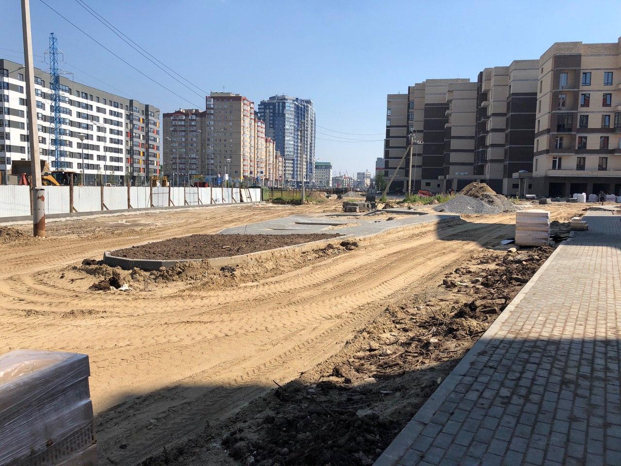 Ведутся работы по благоустройству территории, асфальтирование тротуаров.