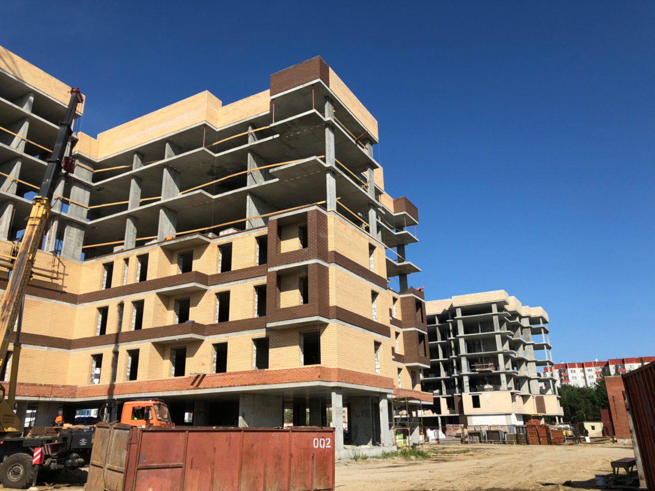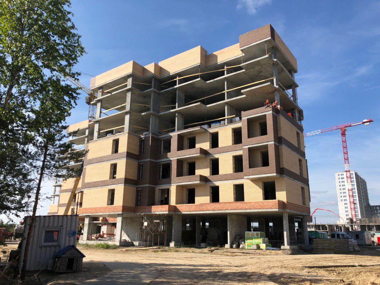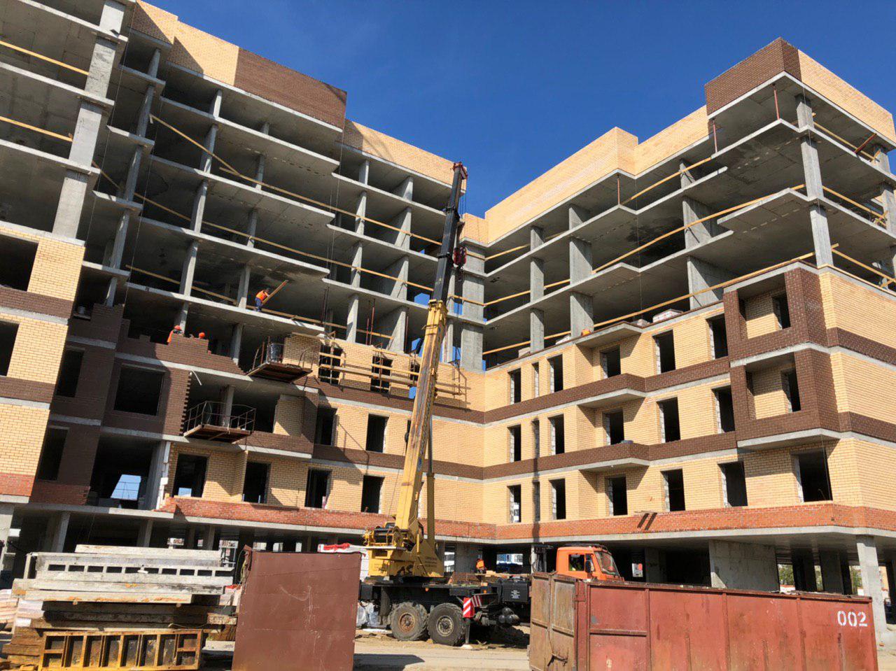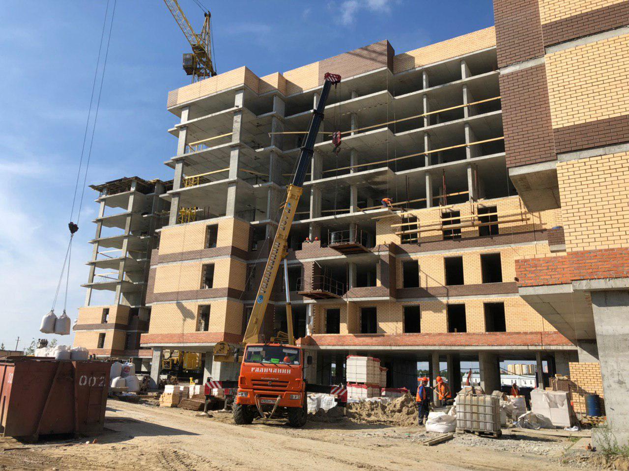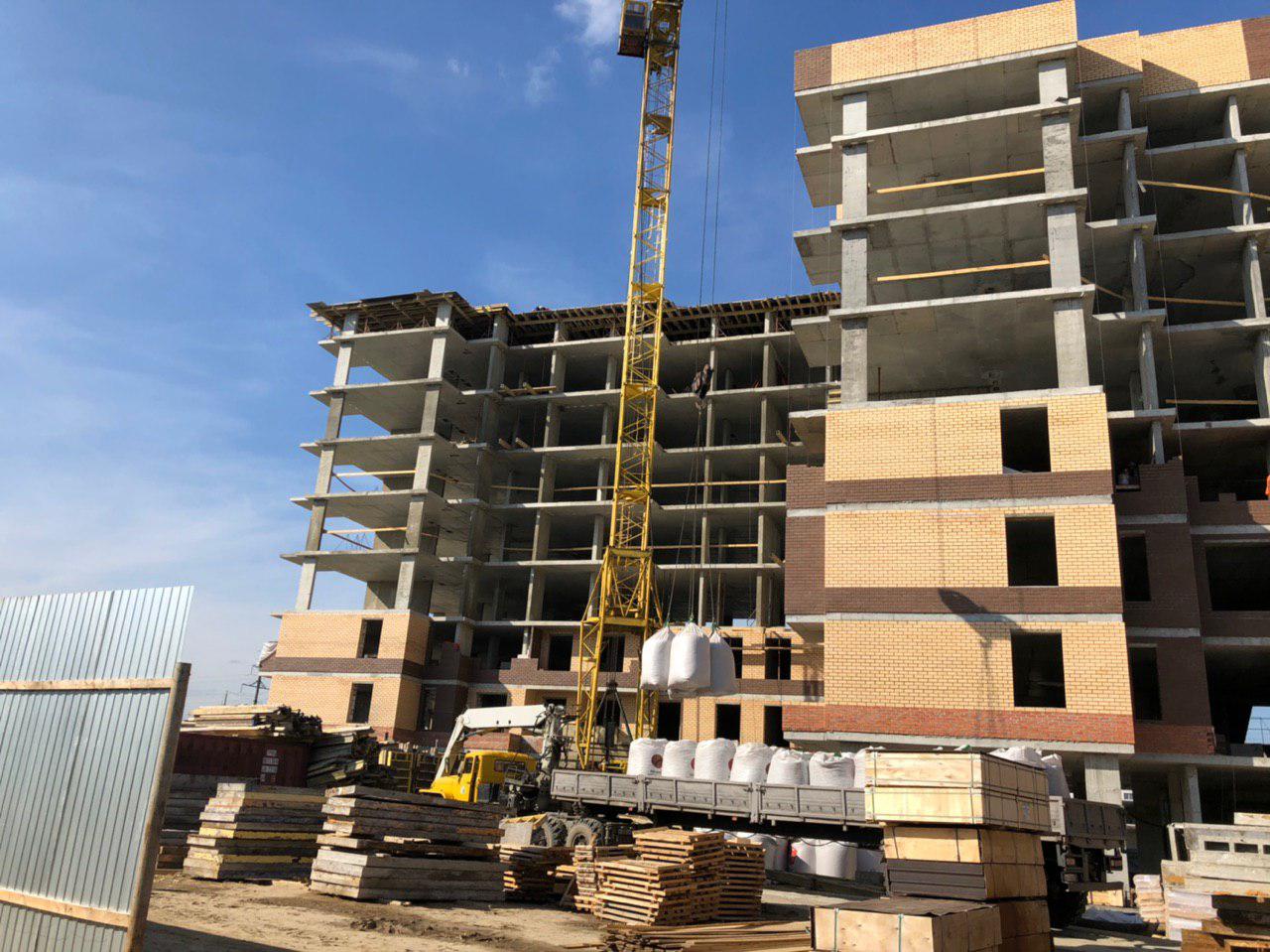 Ведутся работы по укладке ограждающих конструкций на 2,3,4, этажах из кирпича 6,7,8 этажных секций.