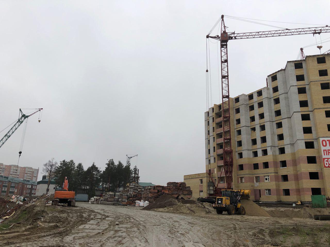 Ведется кладка ограждающих конструкций многоквартирного жилого дома и перегородок. Ведутся работы на кровле. Работают 3 крана, бульдозер.