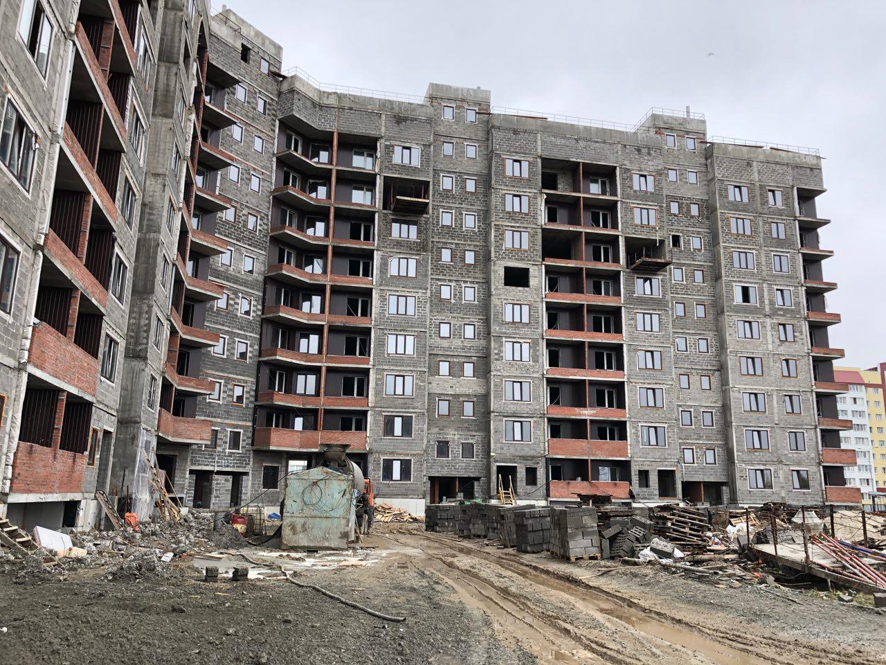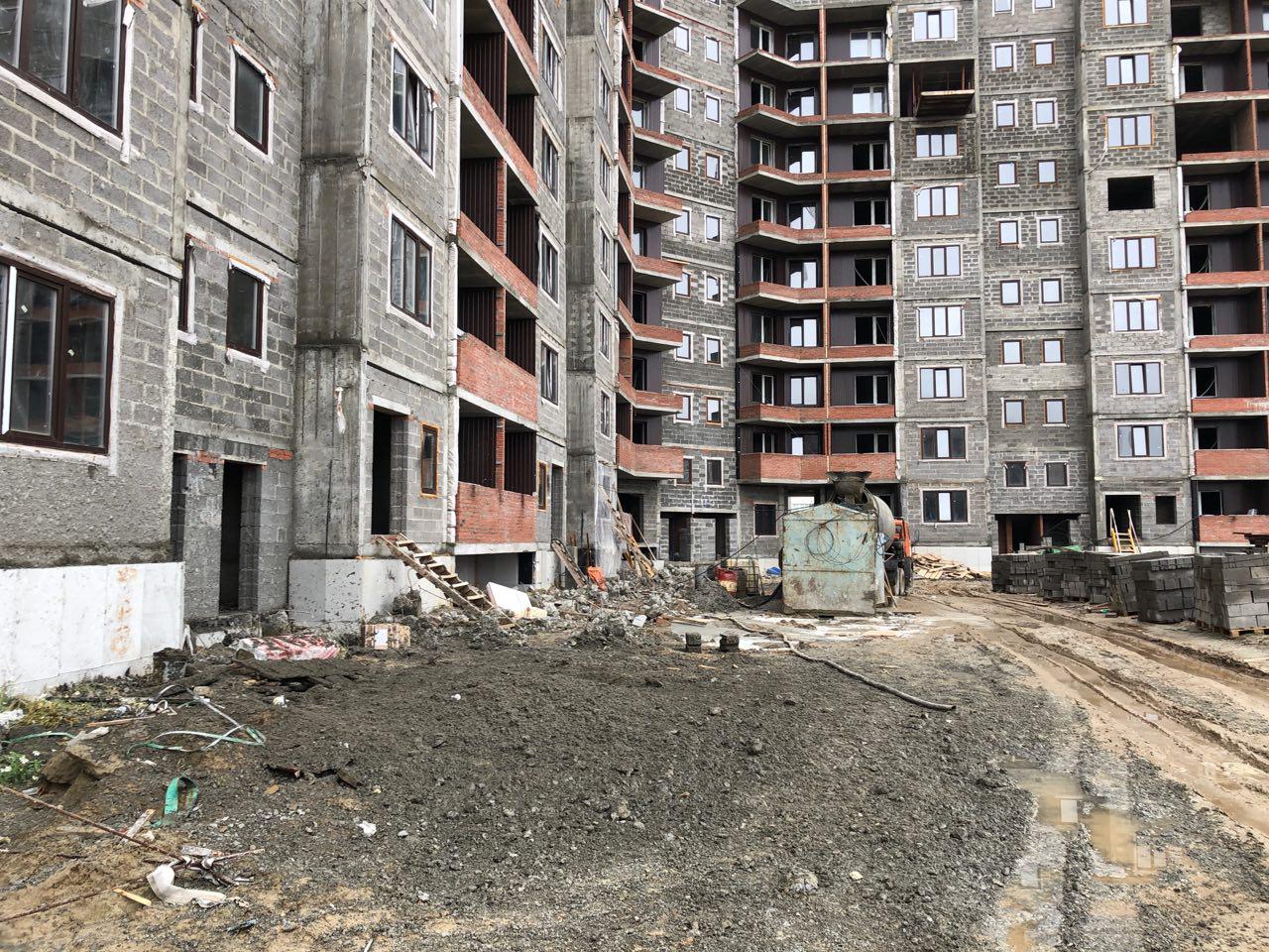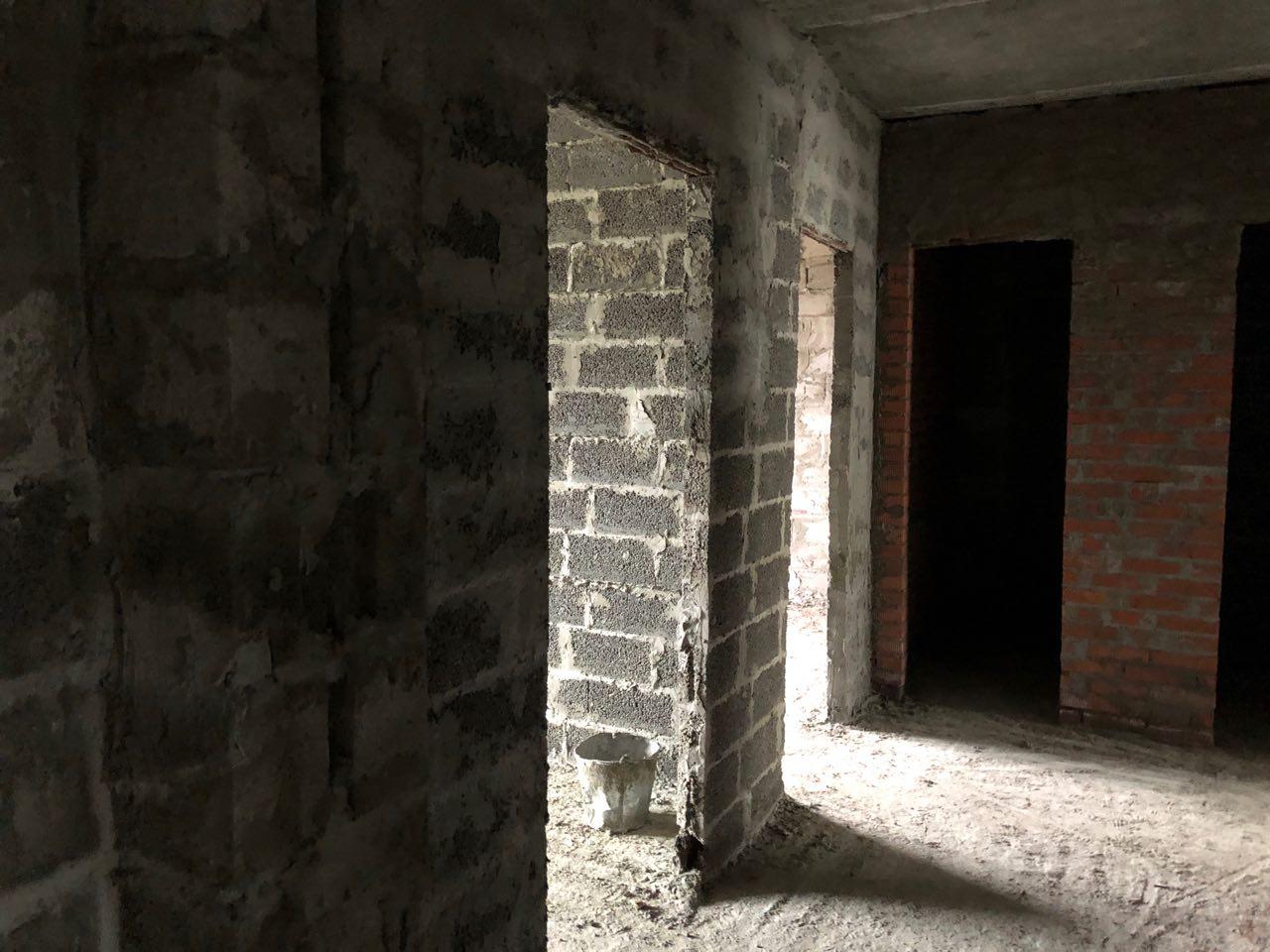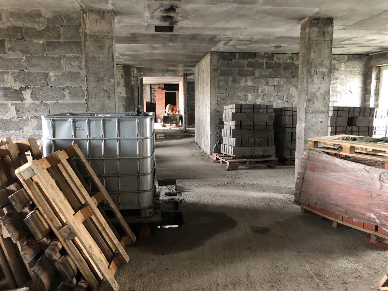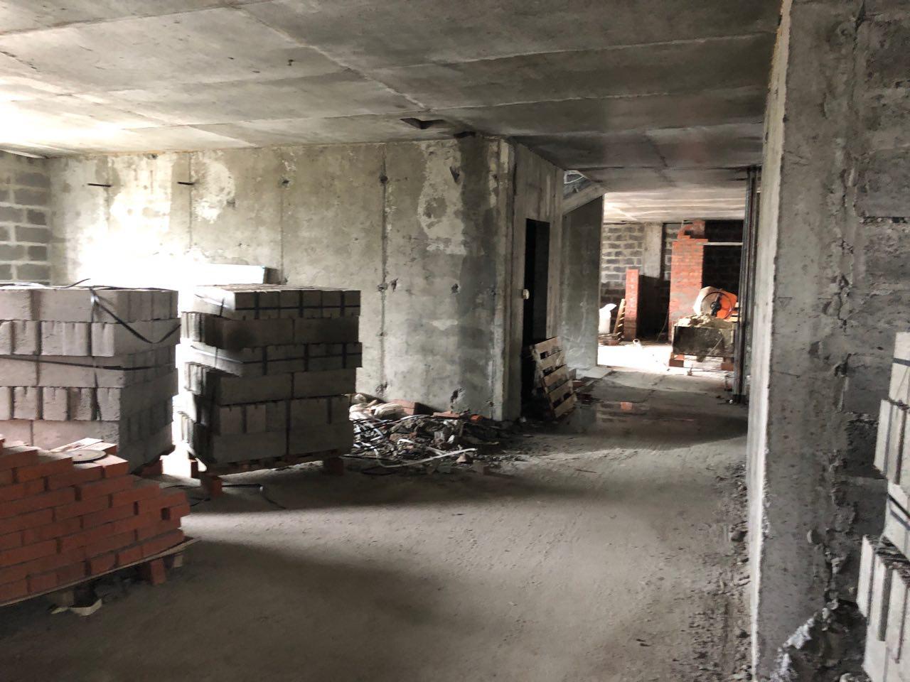 4 человека производят кладку перегородок на 7 и 8 этажах в 5 подъезде.