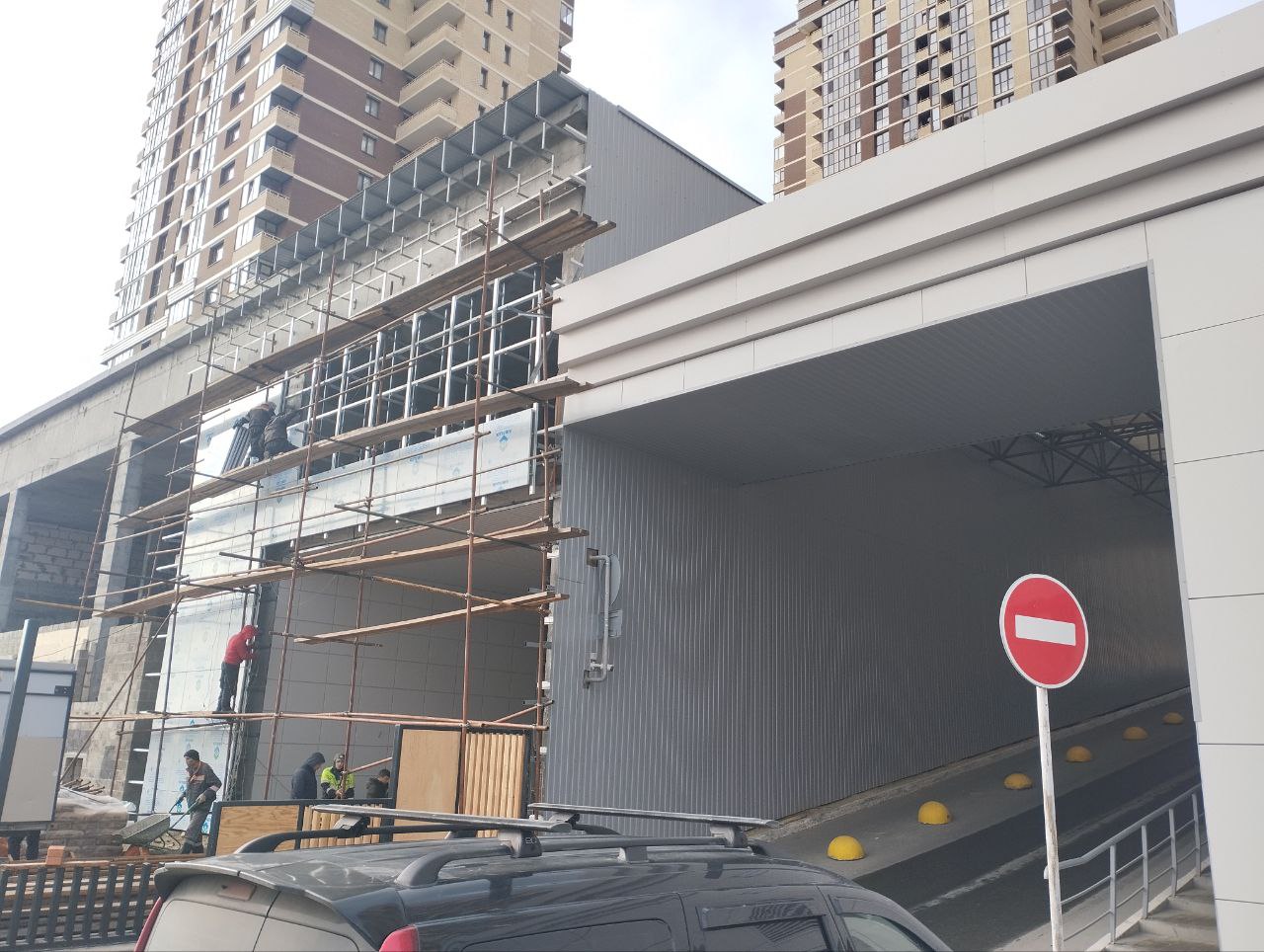 На строительной площадке завершаются строительно-монтажные работы.