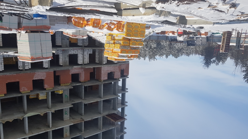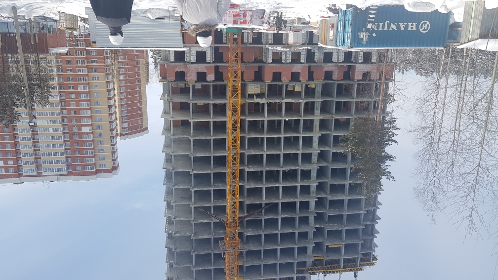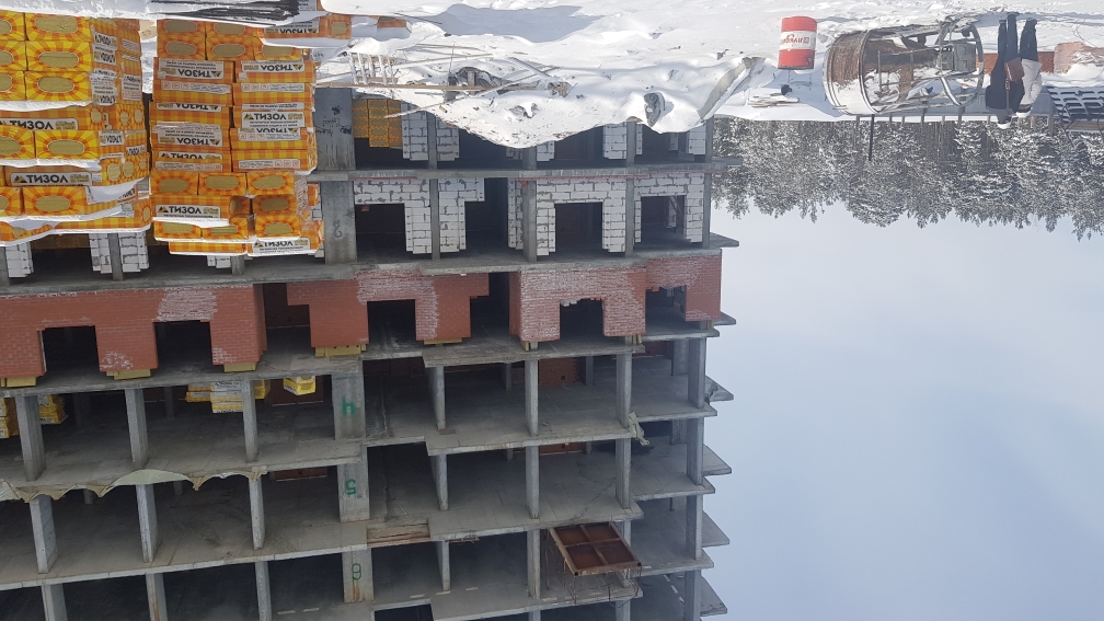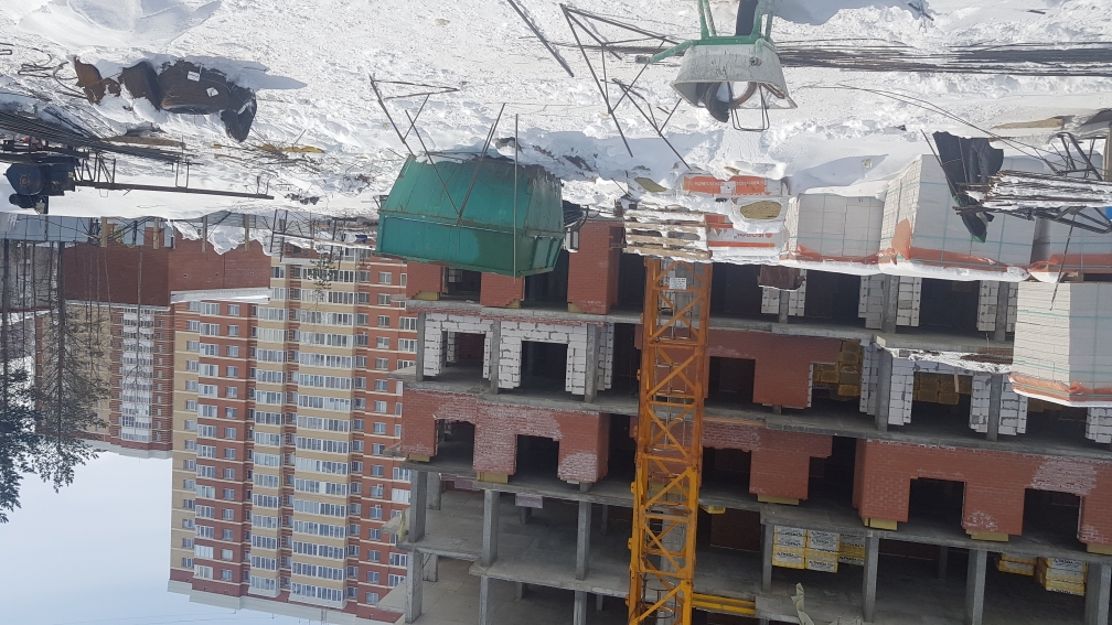 На строительной площадке ведутся строительно-монтажные работы.