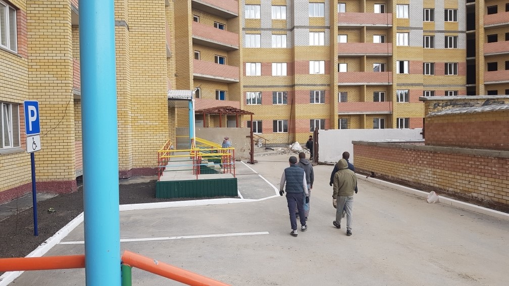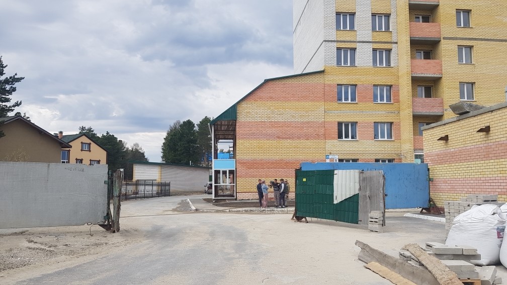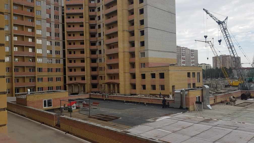 На строительной площадке находятся ориентировочно 5-10 рабочих.