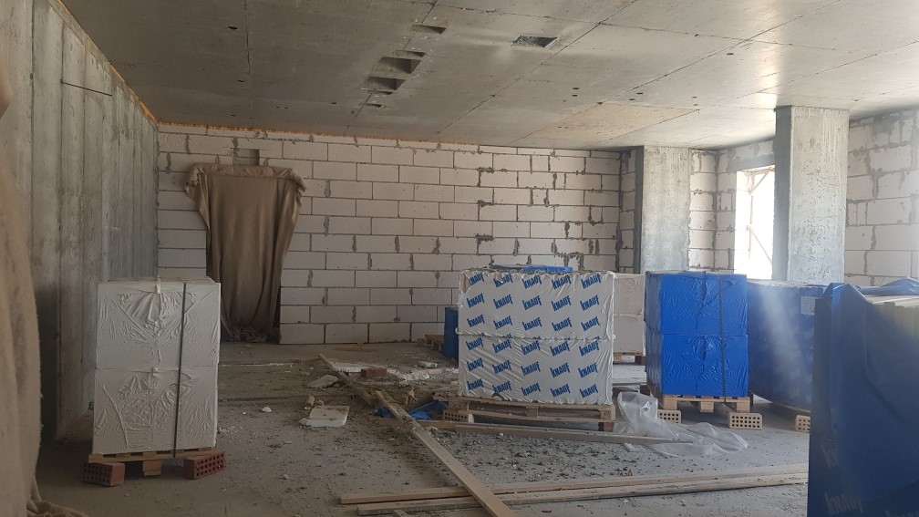 Устройство многослойной стены 3, 5 этажей, чердака и парапета кровли, а также в помещение выхода на кровлю. Устройство перегородок из пазогребневой плиты 3-4 этажей. Монтаж внутренней электропроводки. Устройство монолитного парапета.