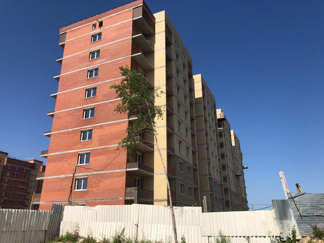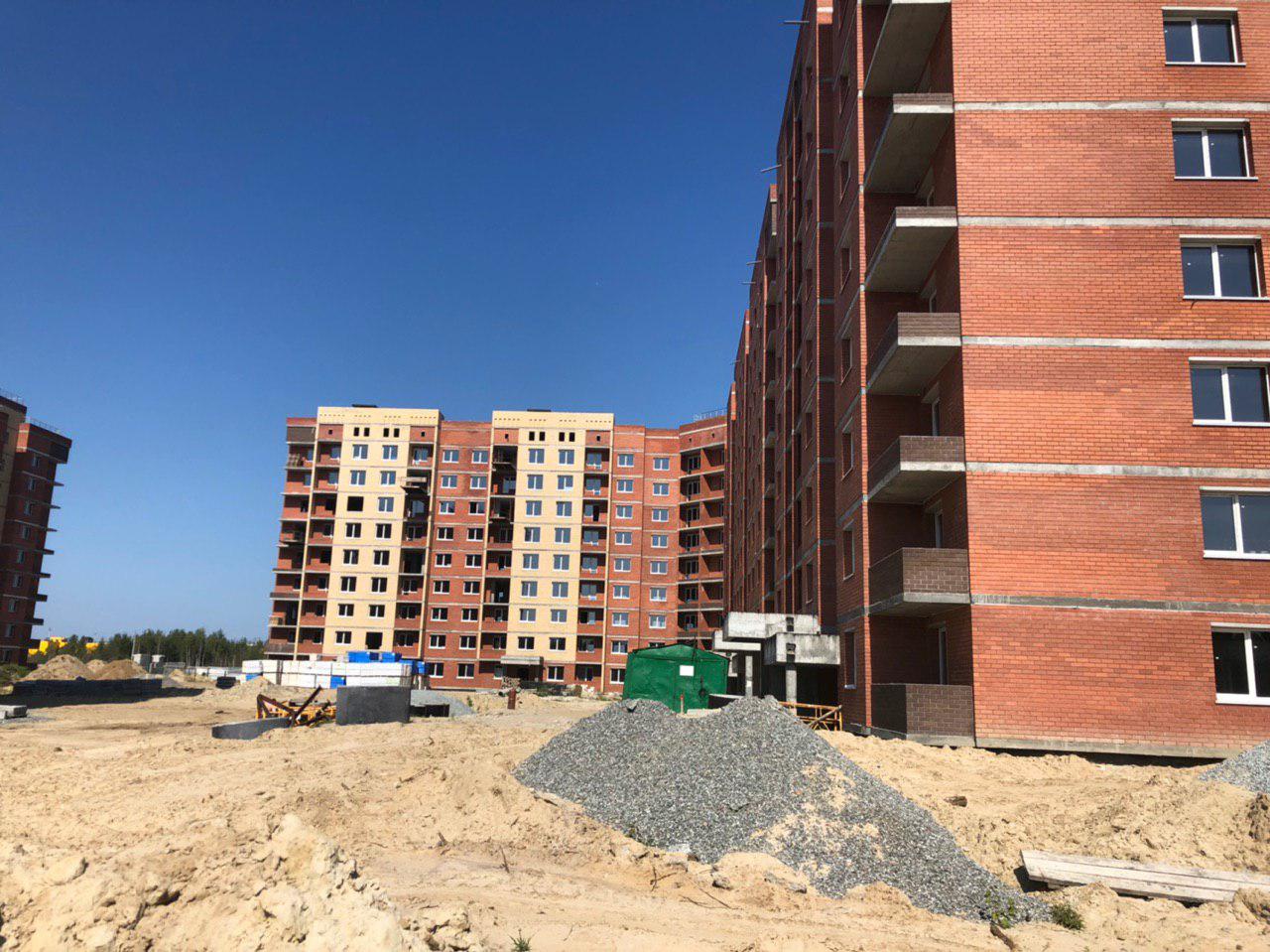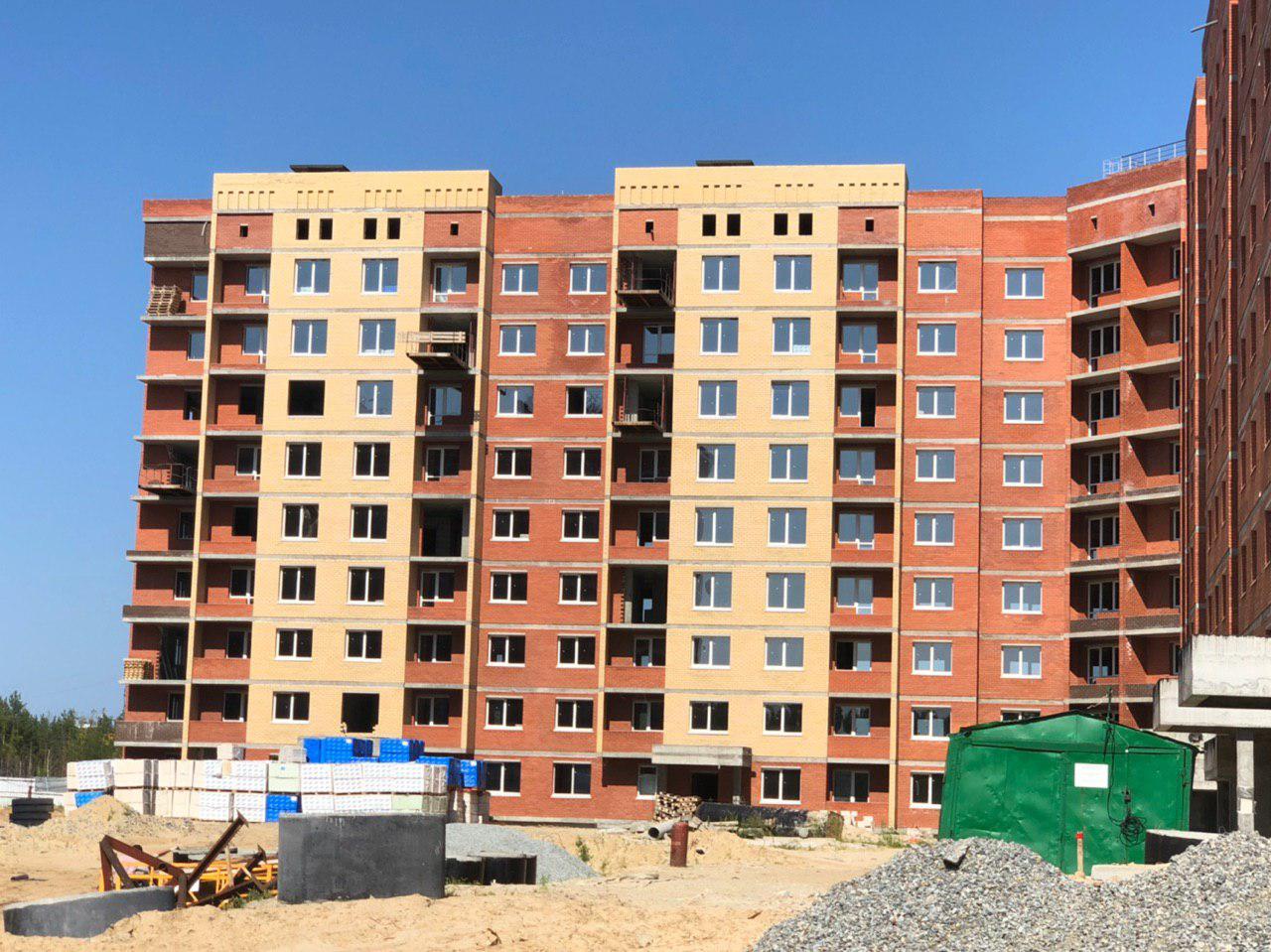 Со стороны внешнего фасада работает автокран, ведутся внутренние работы.