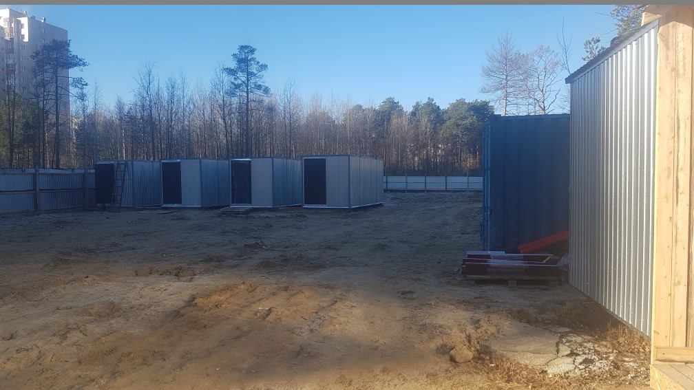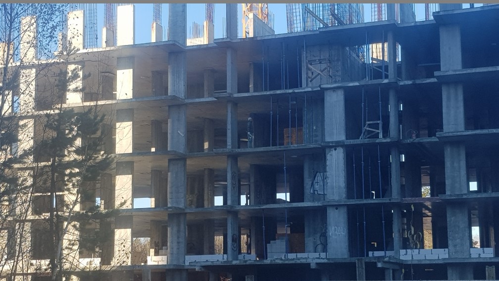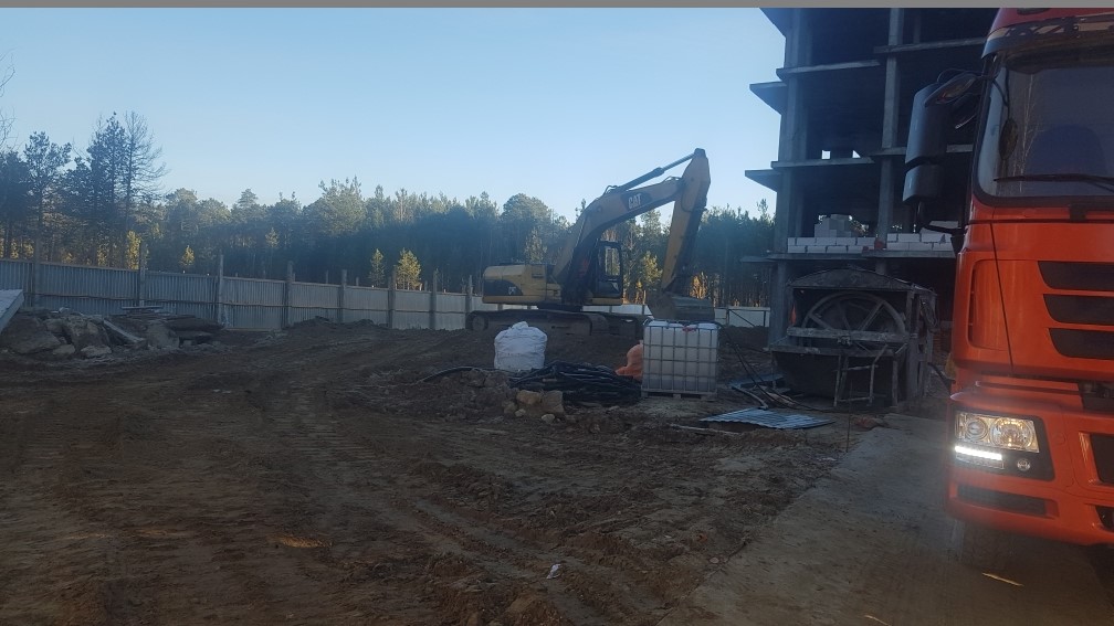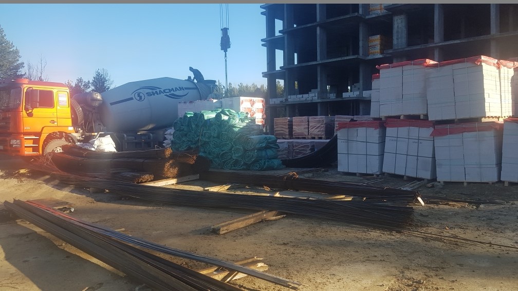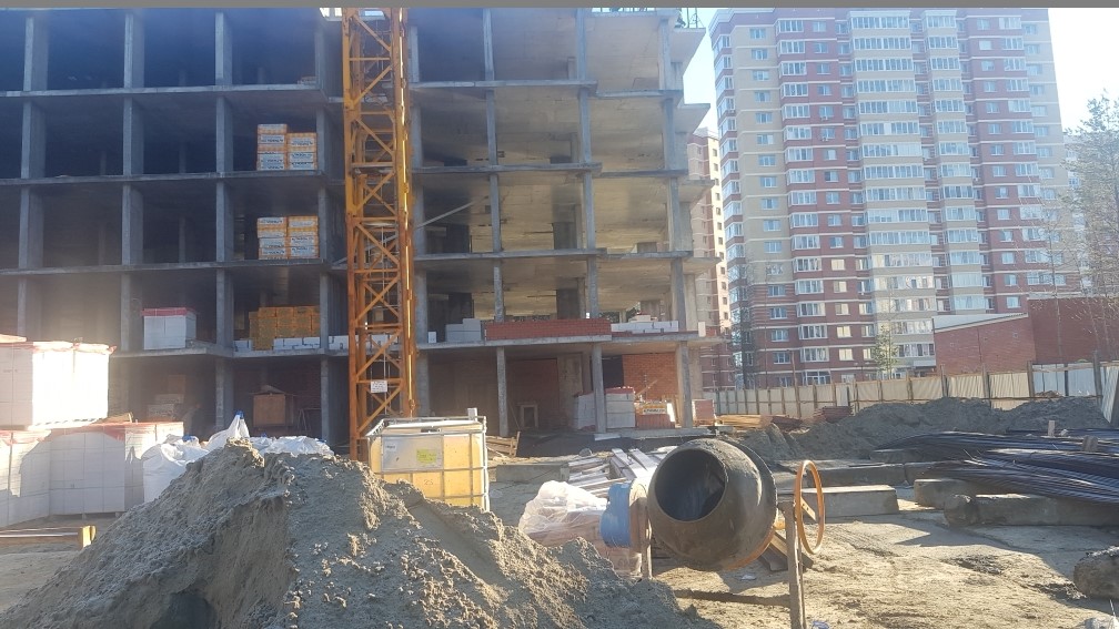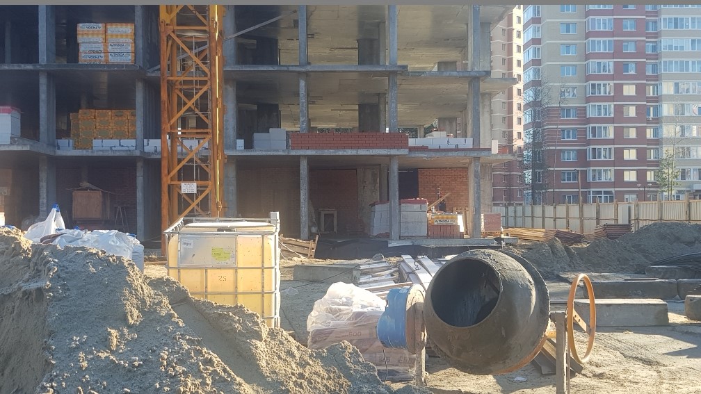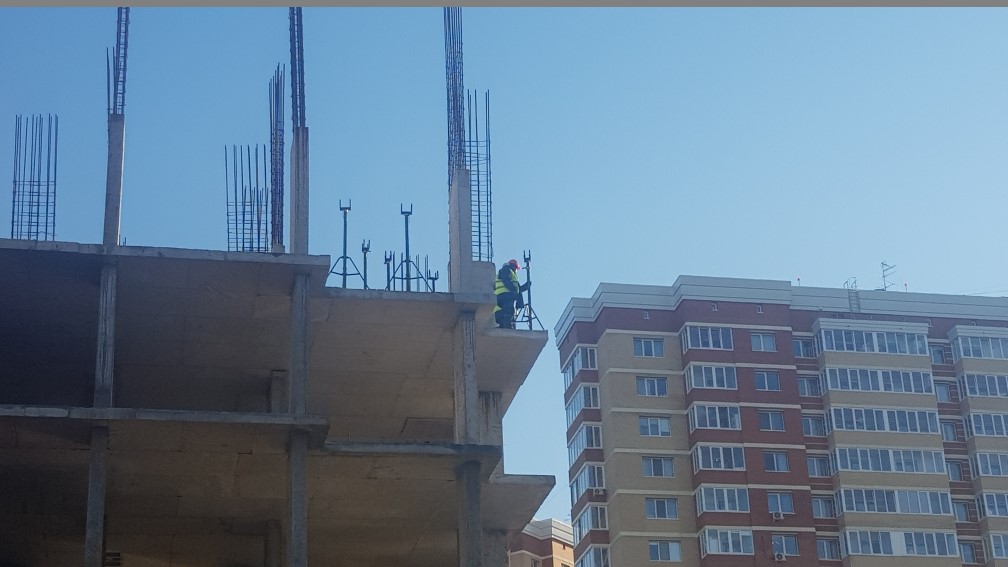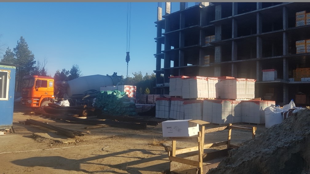 На строительной площадке ведутся строительно-монтажные работы.