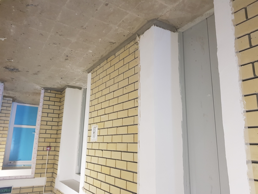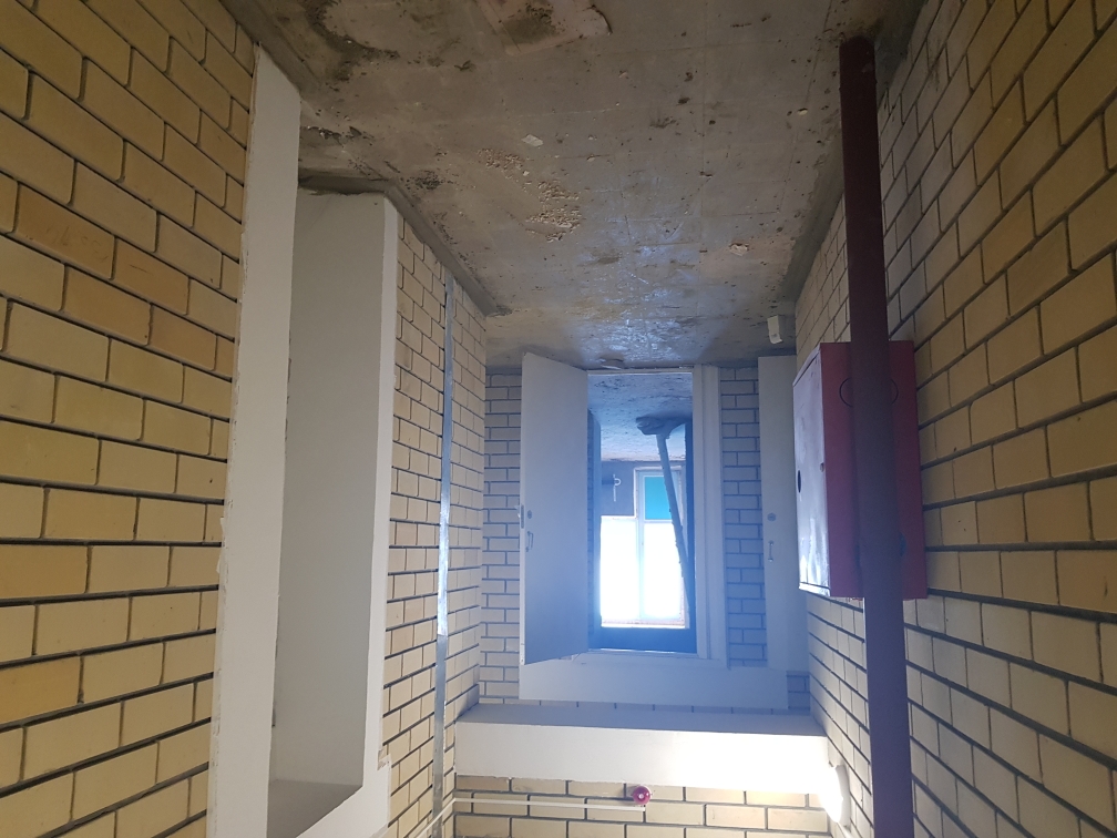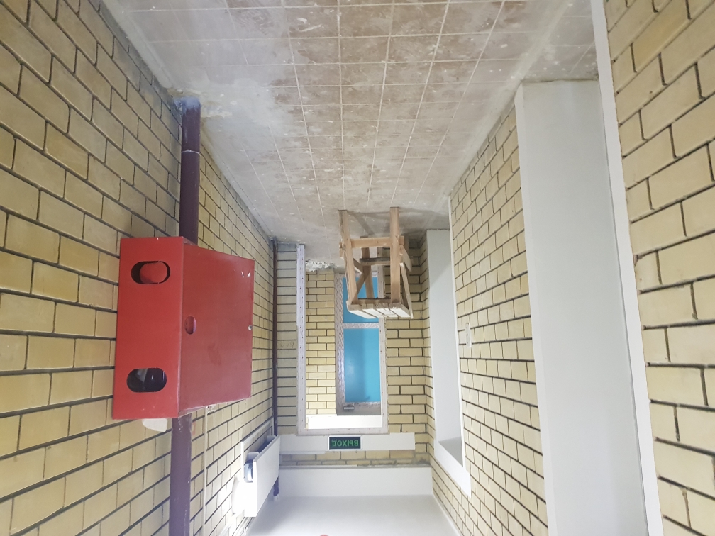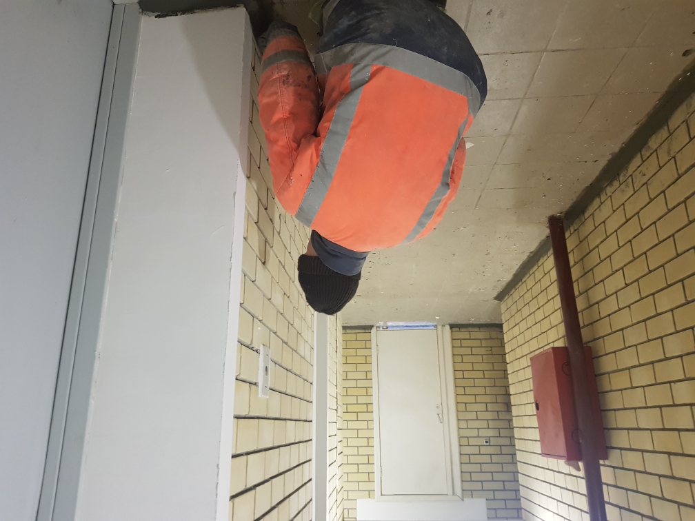 В четырех подъездах, в местах общего пользования ведутся работы: по укладке плинтусов из бетона, а также их окраске, очистке кирпичной кладки, по чистовой уборке.