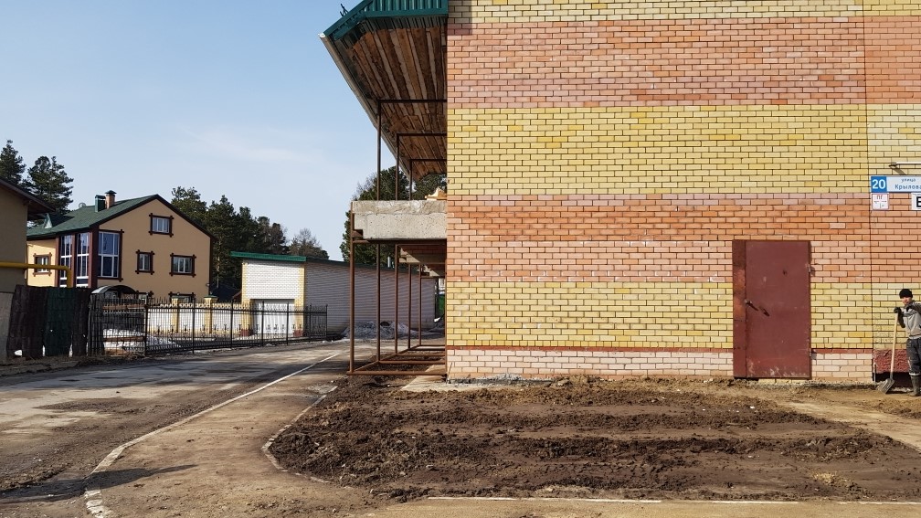 На строительной площадке находятся ориентировочно 5-10 рабочих.