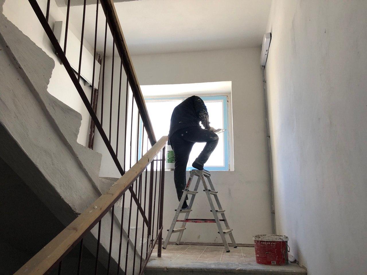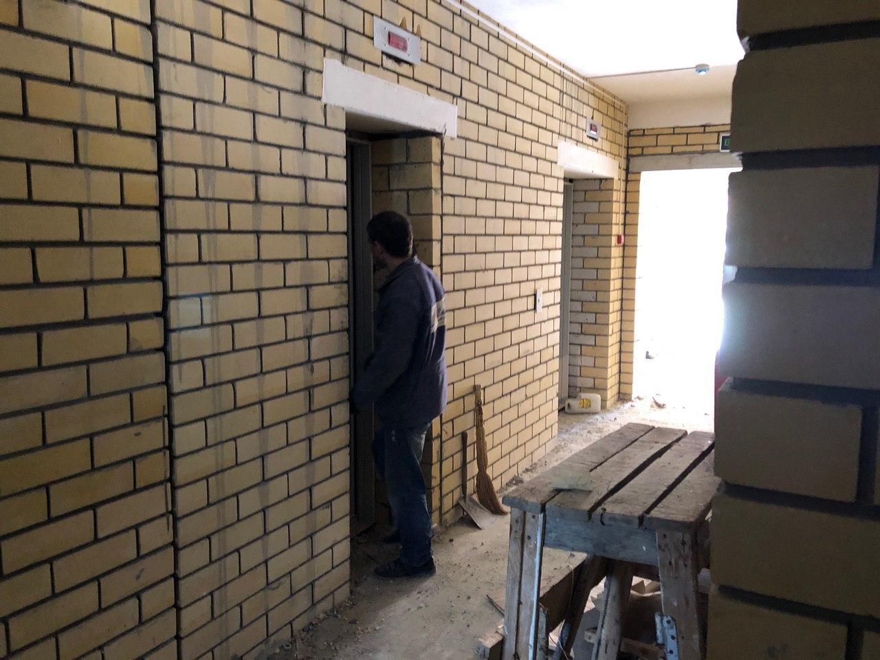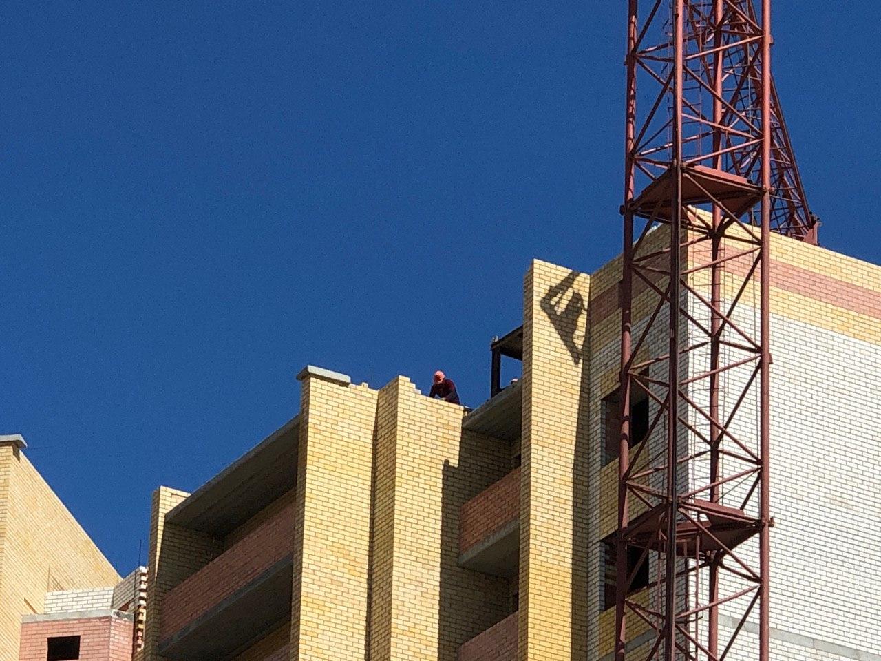 На строительной площадке находятся ориентировочно 7-10 человек, 3 каменщика ведут кладку 12 этажа 8 секции. Внутри 4 секции 2 лифтера ведут работы по пуско-наладке лифтов, грузовой лифт во 2 секции функционирует. В 1 секции 1 штукатур-маляр ведет чистовые работы по покраске мест общего пользования.
