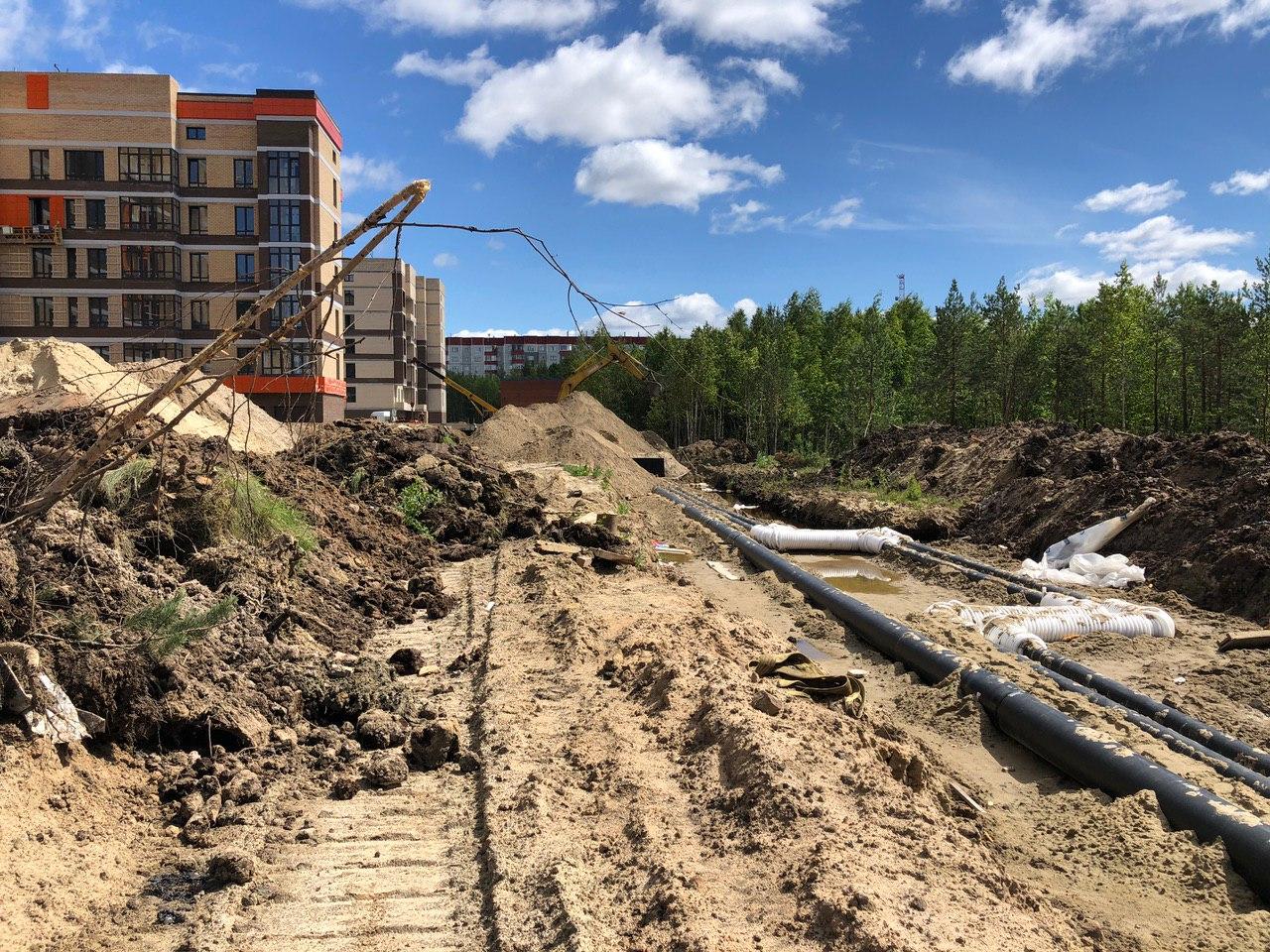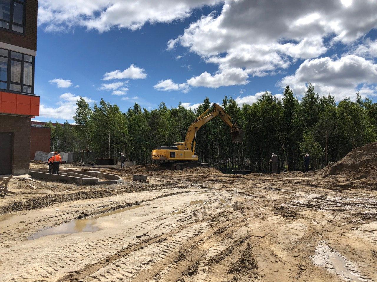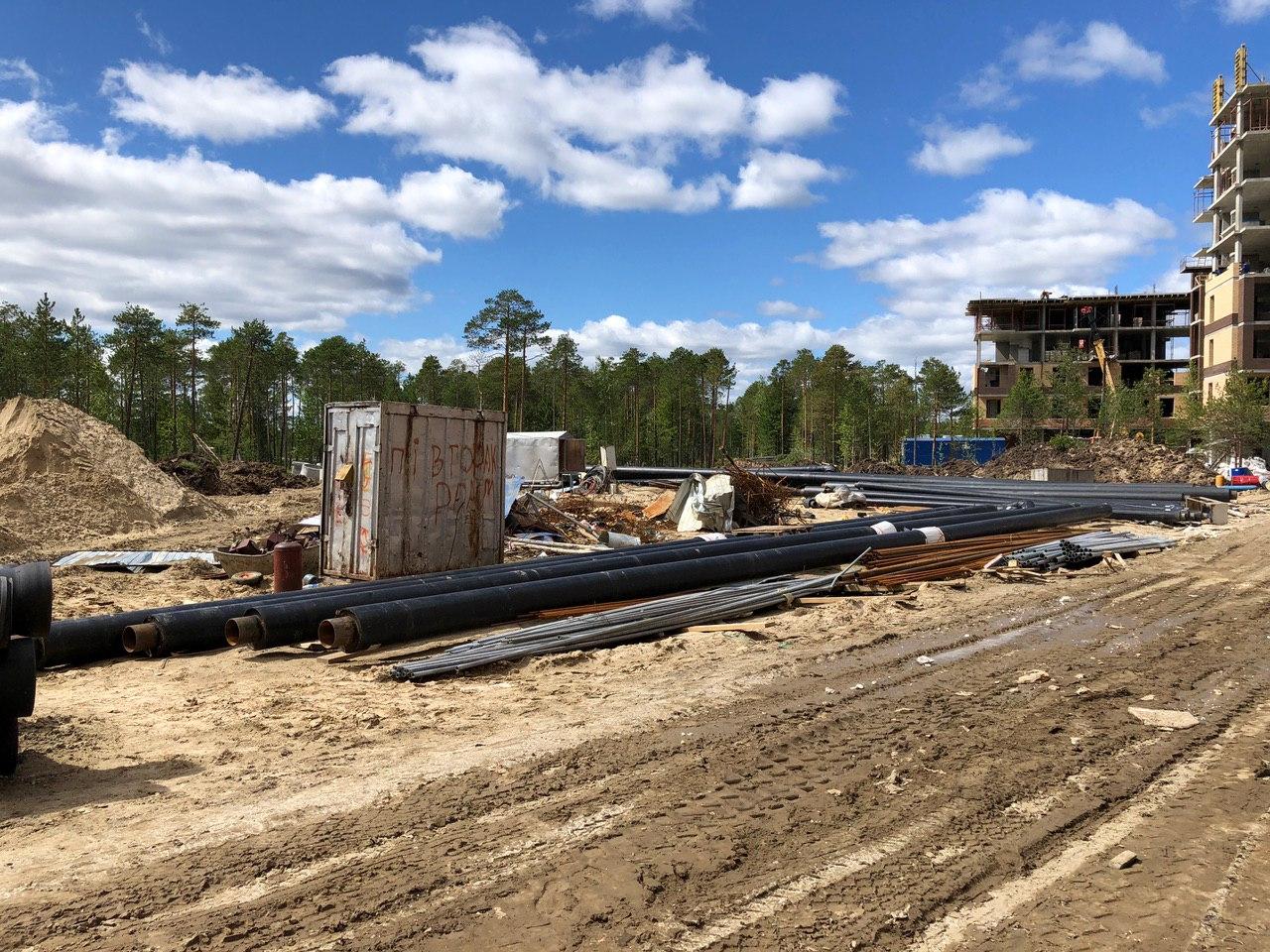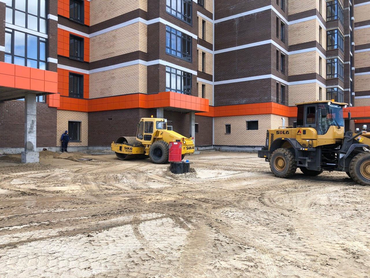 Ведутся работы по прокладке труб тепловодоснабжения, работы по благоустройству территории.