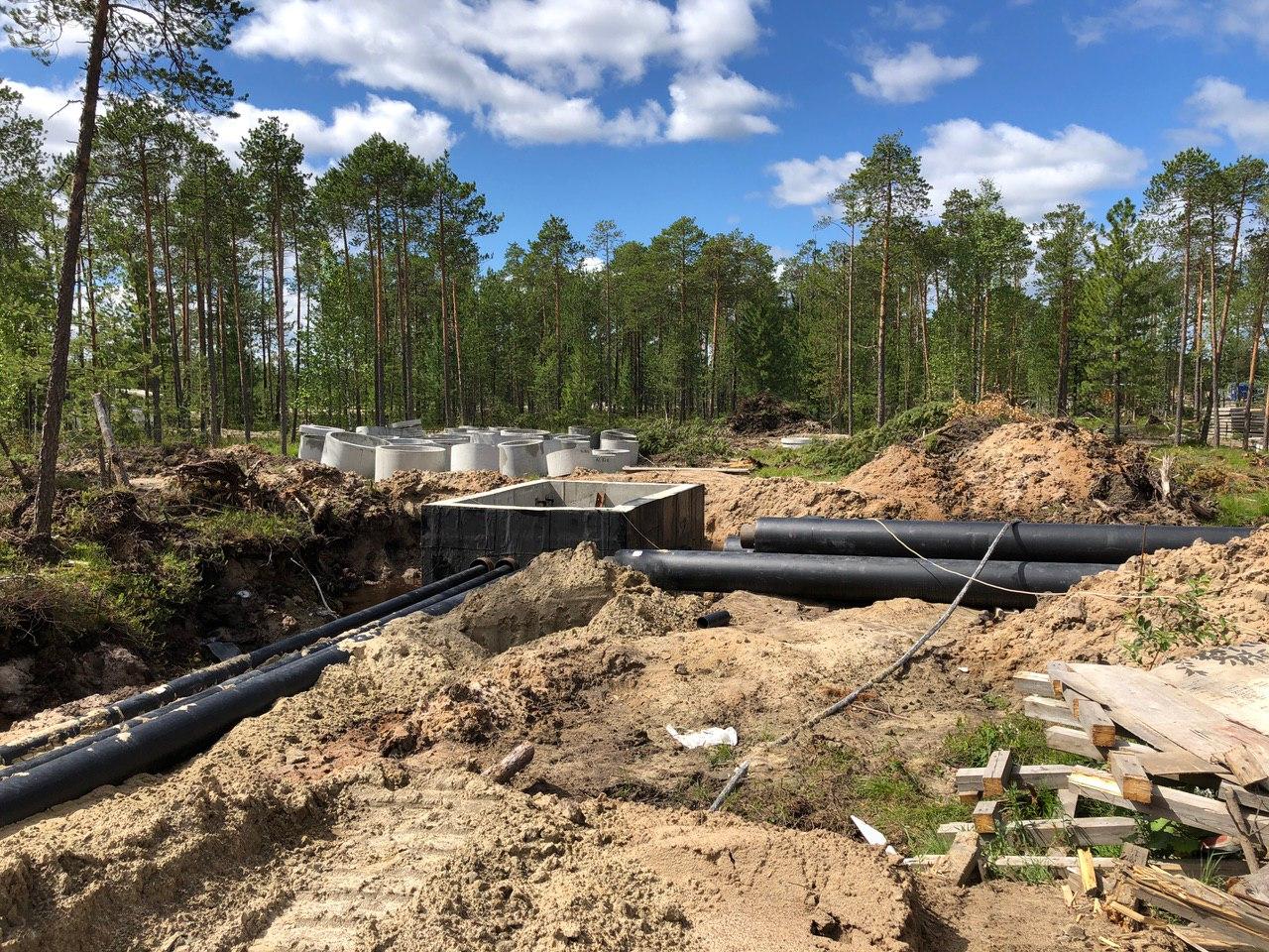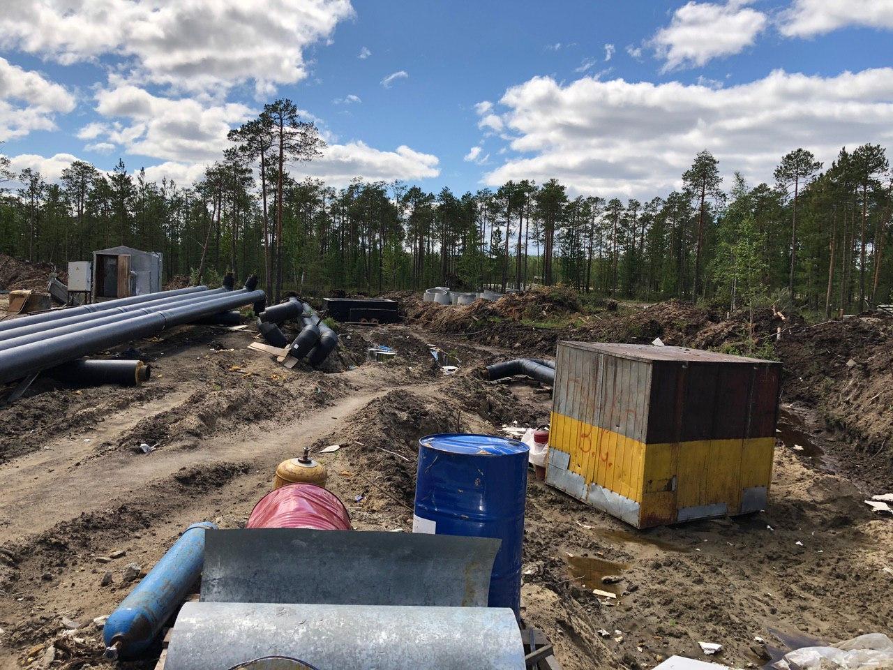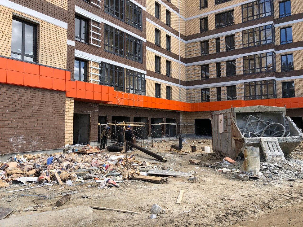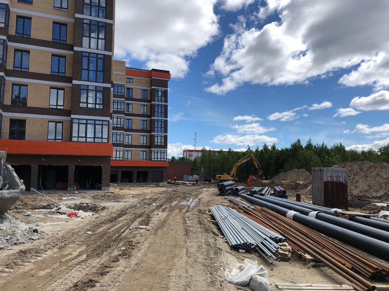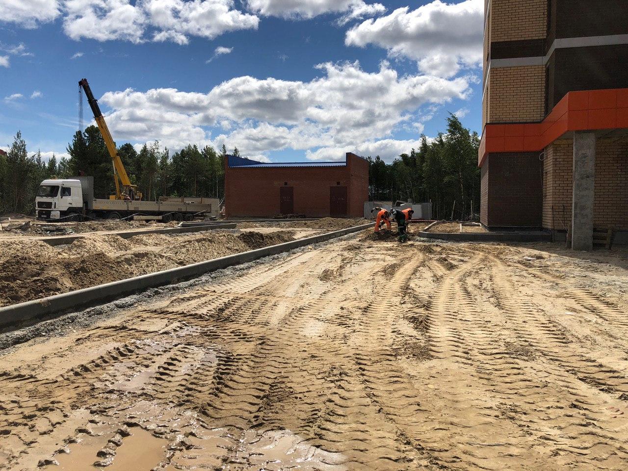 Ведутся работы по прокладке труб тепловодоснабжения, работы по благоустройству территории.