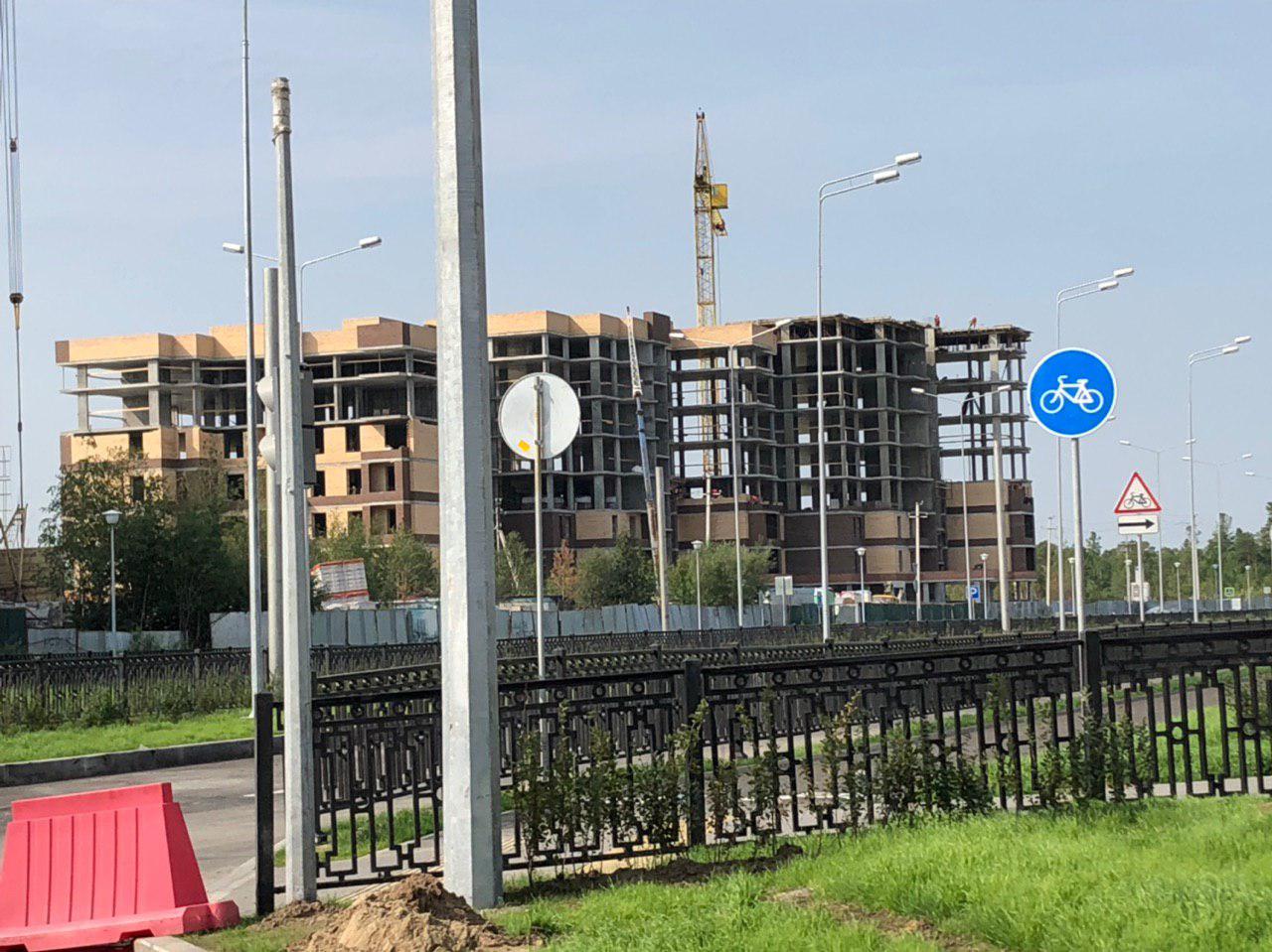 Ведутся работы по укладке ограждающих конструкции на кровле 6,7 этажной секций.